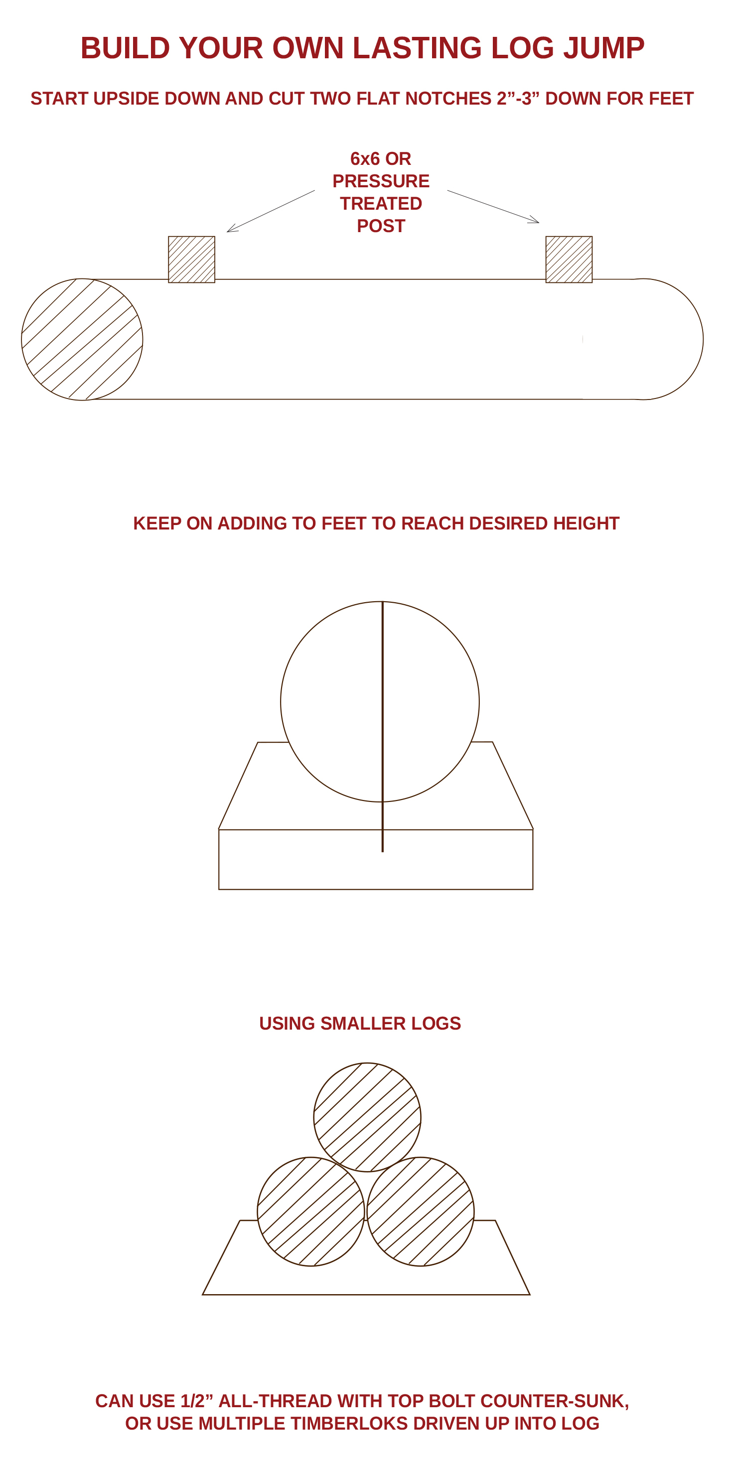 The type of wood you select can make a difference in the longevity of your jumps, even if you’re just building from logs. “If you get a pile of old pine logs, they could rot in a year or two whereas if you found something like locust that lasts longer, you’re going to be ahead of the game,” Cooper said. “I hate replacing things when they rot, so I’ll pay a little more up front to have something that will last. You can even put a preservative on it like a stain or an oil to make them last longer, but no log is going to last forever.”