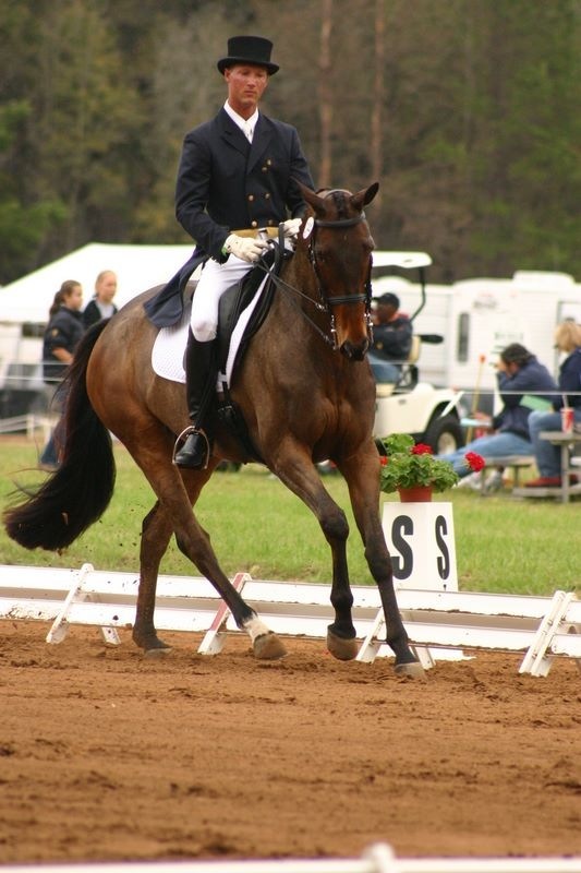 To recap, the pair had an absolutely stellar test…it’s one I wish I’d video taped so I could study it (creepily) at night and try and learn her secrets. Dobbin seems to have adopted a "floaty" rhythm tohis gait (think Courageous Comet, but with more "air time") – now correct me if I’m wrong, but last year (the very little that I saw of him), he seemed very accurate, rhythmical, and correct in his gaits, but this year…this dynamic duo seems to have dipped into a special, magical melting pot of wonders to get these drool-worthy gaits. Very fluid, very springy, and very eye-catching. "I’ll have what she’s having!" if you catch my drift! Obviously, someone ate their Wheaties this morning. I thought they deserved better than a 43.0, but that score for a CIC3*W division ain’t too shabby.