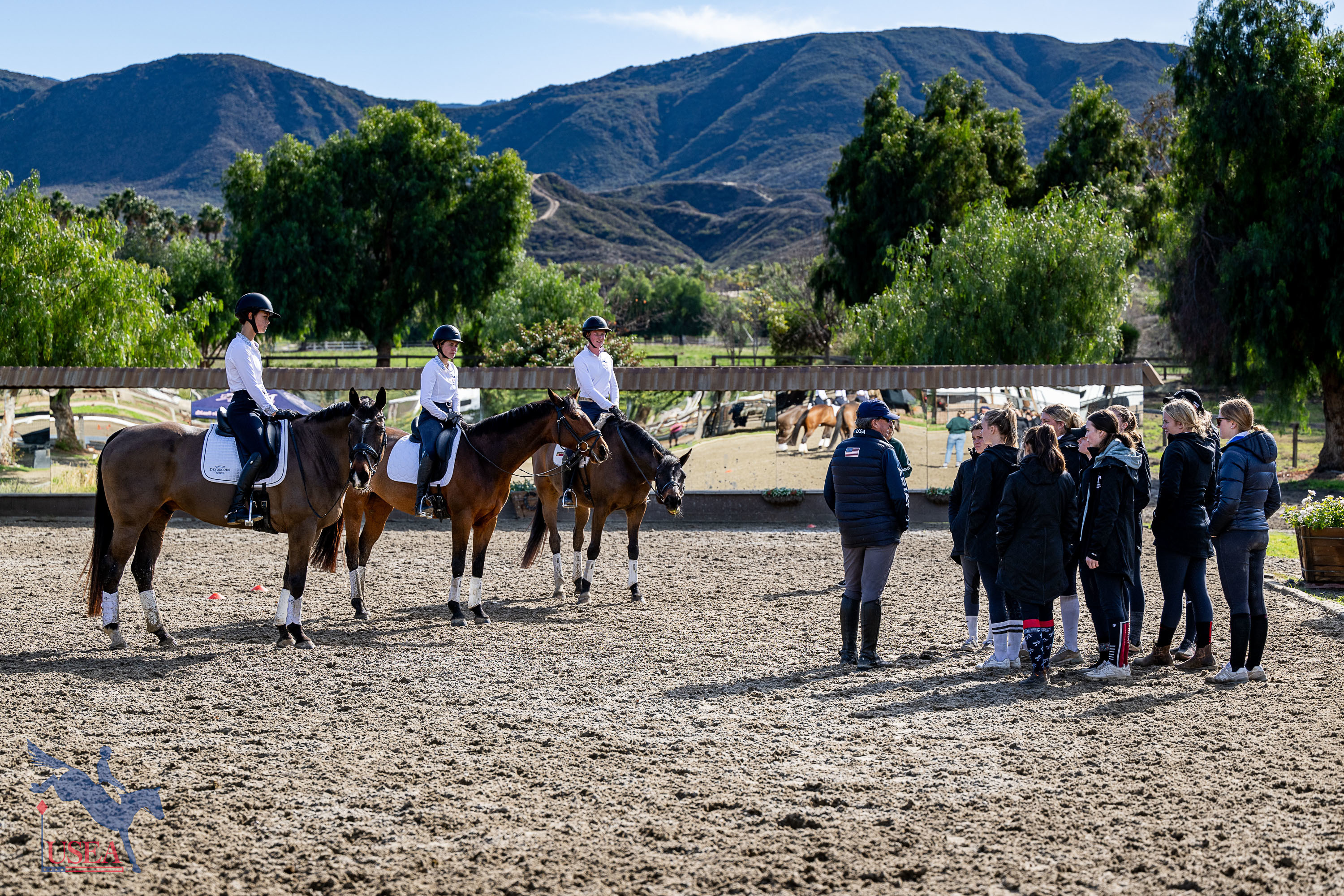 Temecula, Calif.—Jan. 4—Back to the flatwork and back to the classroom for the third day of the EA21 National Camp held at Kingsway Farm. Having combined the study of the aids with the German training scale and the rider responsibility scale, participants returned to one of the first concepts discussed on day 1: training to compete.