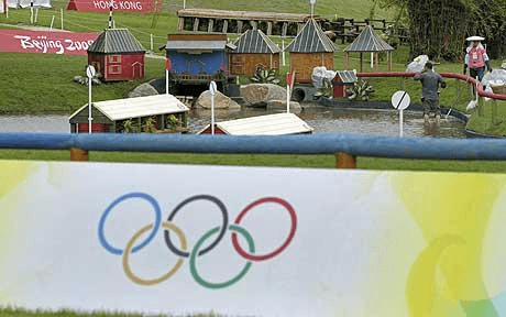 (All set for the off: Workers prepare the cross country venue at the 5.7-km Beas River Olympic golf course in Hong Kong. Photo: Getty)