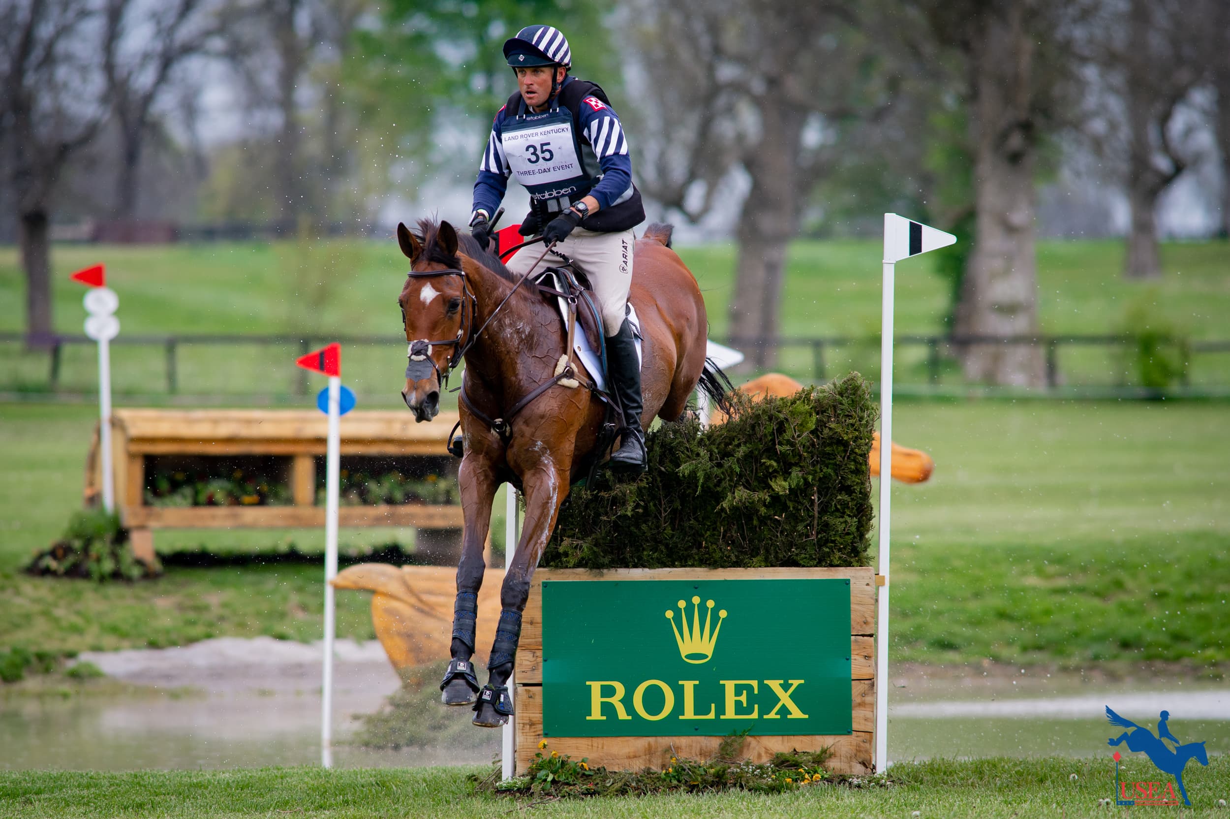 Townend said of the course, “It’s right up there with one of the toughest five-stars in the world. From a technicality point of view, this is the toughest you are going to get.” Boyd Martin added, “I’ve been competing here for over a decade and this is one of the hardest cross-country courses designed here.” However, as difficult as it proved to be, the percentage of horses that jumped clear was 66 percent. The typical worldwide average of horses jumping clear in a five-star is 55 percent, which means making time was the deciding factor.