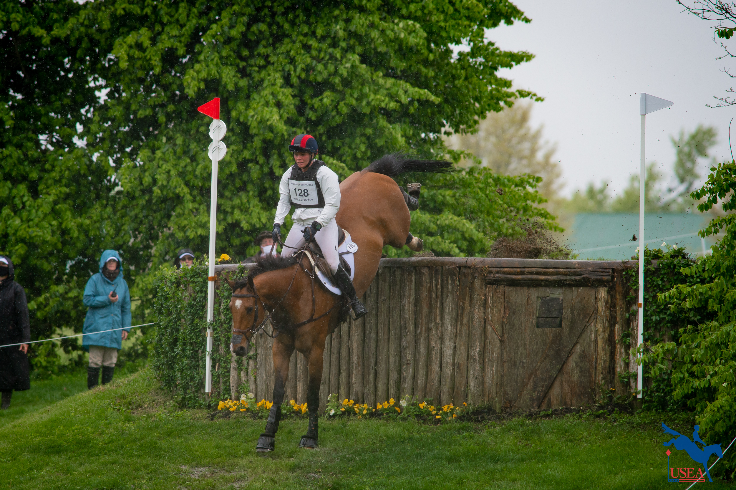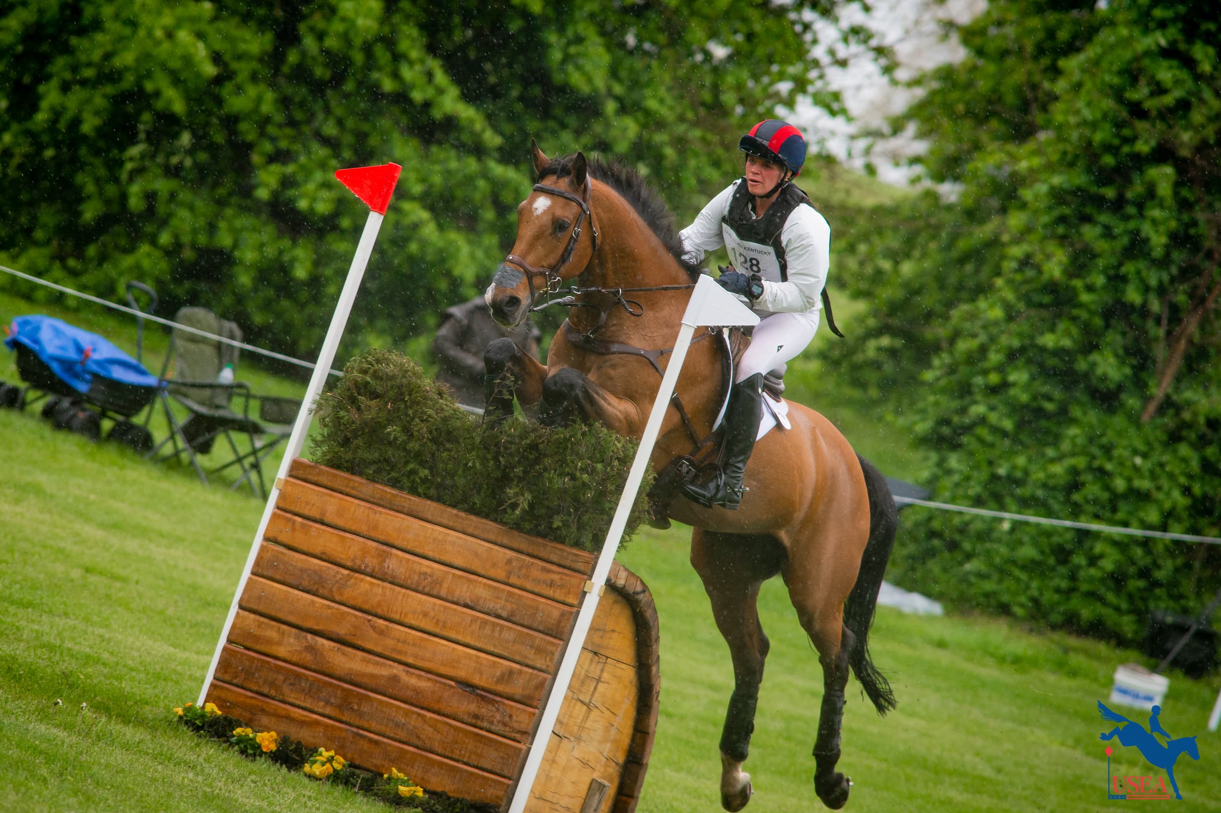 The inaugural CCI4*S took place in the afternoon while the rain was at its worst. The first ride was at 1:45 p.m. and the last ride of the day was Tamra Smith and En Vogue who hold onto their lead going into tomorrow’s show jumping. “It rode very tough and big but with En Vogue, it was a blast,” said Smith.