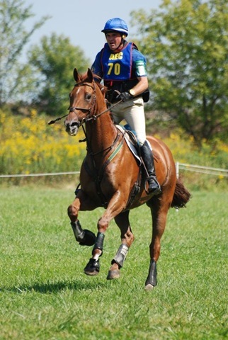Phillip Dutton and Bruce Duchossois’s Wild Tiger jumped from fifth to first today after competing in the cross-country phase of the Intermediate division at the 2009 Bit of Britain/USEA AEC. The standings in this division are fairly tight at the top, and tomorrow’s show jumping course could shuffle the leaderboard even more. Complete results here. Photos by Emily Daily.