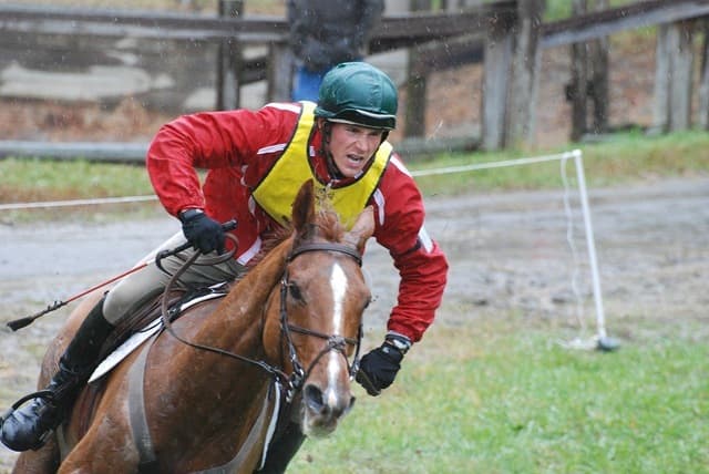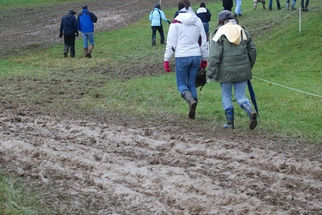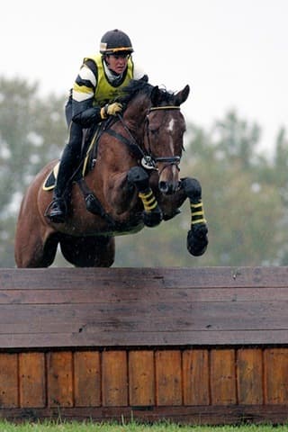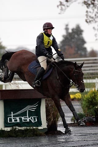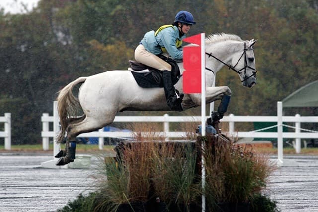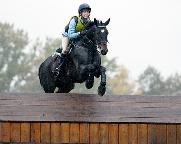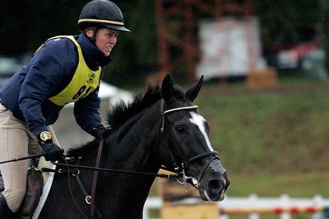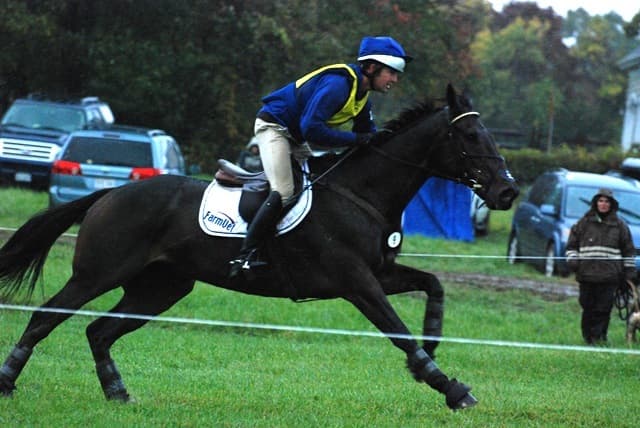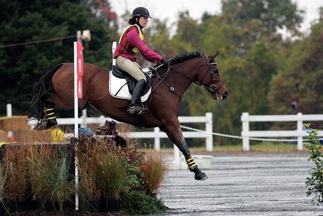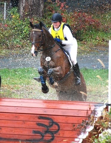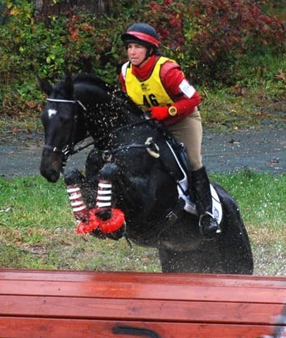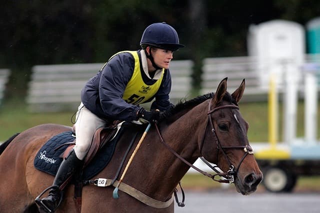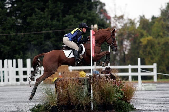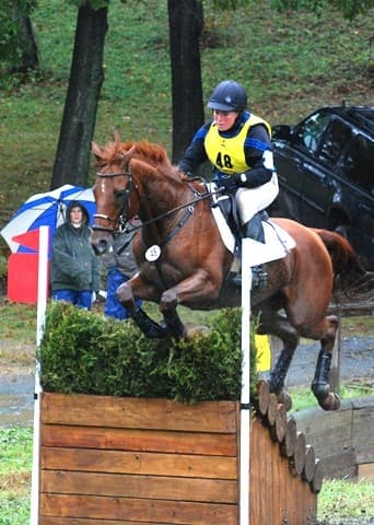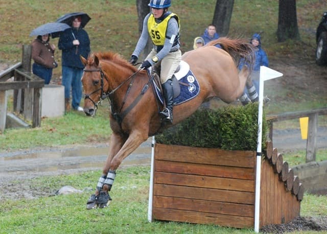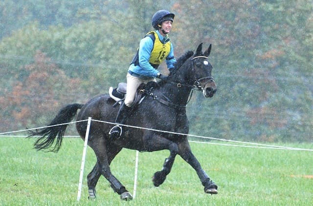Blustery winds and chilling showers pounded the competitors during Saturday’s cross-country rounds at the Dansko Fair Hill International CCI2*/CCI3*. The two-star competitors were the first to slog through the mud at the Maryland venue, and nearly half the competitors withdrew prior to the start because of the sloppy conditions. Those who did run showed not only great tenacity and grit as they guided their horses, but also thoughtful and safe rounds. The organizers and grounds crew did an outstanding job in taking care of the footing, and removing several jumps in order to give the horses the safest routes. At the end of the day, it was Hannah Sue Burnett and Richard Thompson’s Thoroughbred gelding St. Barths (pictured left) who galloped into the lead, leaping from 15th to first after being one of two combinations to finish on a double-clear round. Josh Walker and Emily Daily photos. Results.