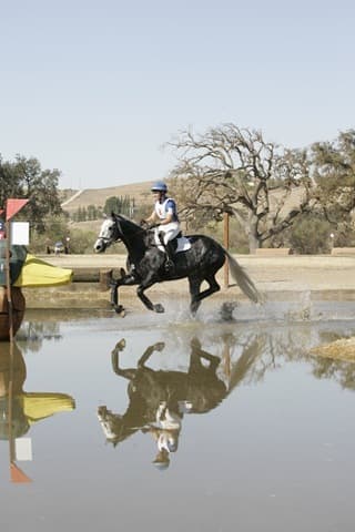 Check out the photo gallery of all the riders in the Twin Rivers CIC3* in Paso Robles, CA, part of the 2009 Adequan/USEA Gold Cup Series. At the end of the day, it was Robyn Fisher and her athletic Holsteiner mare Lady Calido (pictured left, Josh Walker photo) who finished atop the pack, adding only 5.6 time faults to their second-placed dressage score of 42.0. Overnight leader Tiana Coudray and her Irish Sport Horse gelding Ringwood Magister tacked on 15.6 time penalties to drop one place with a 54.4. With their score of 47.6, Fisher and ‘Callie’ will have at least a rail in hand over tomorrow’s show jumping. Photos by Josh Walker & Emily Daily