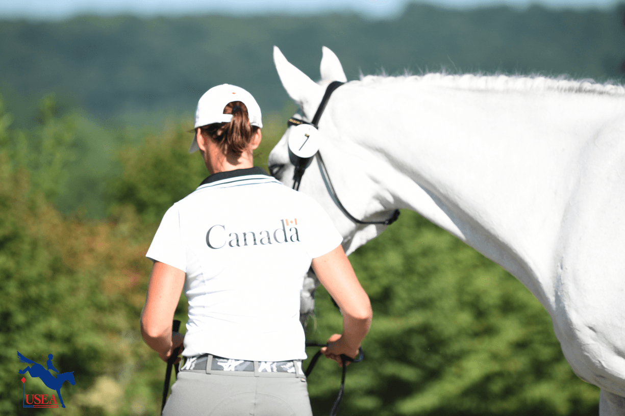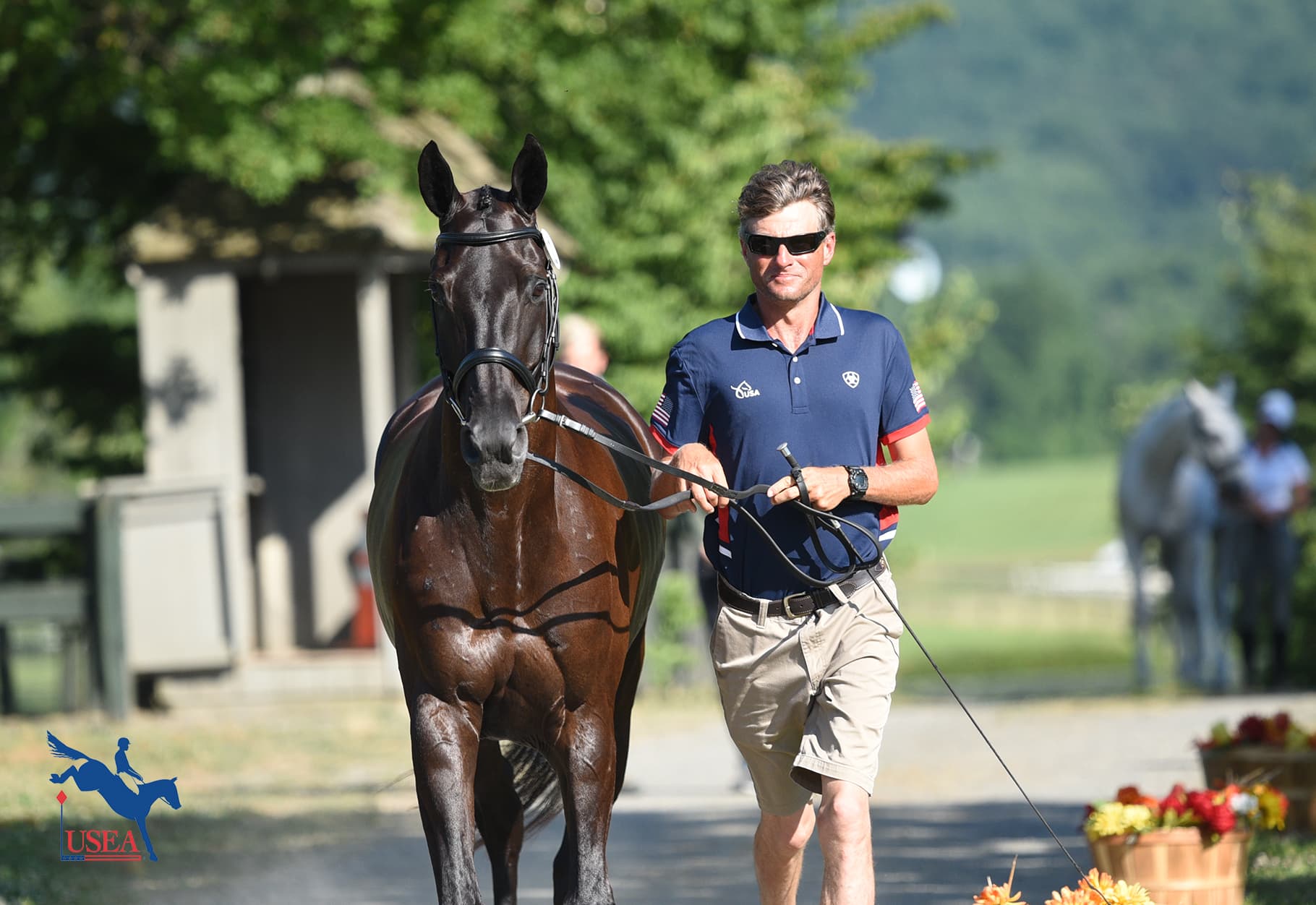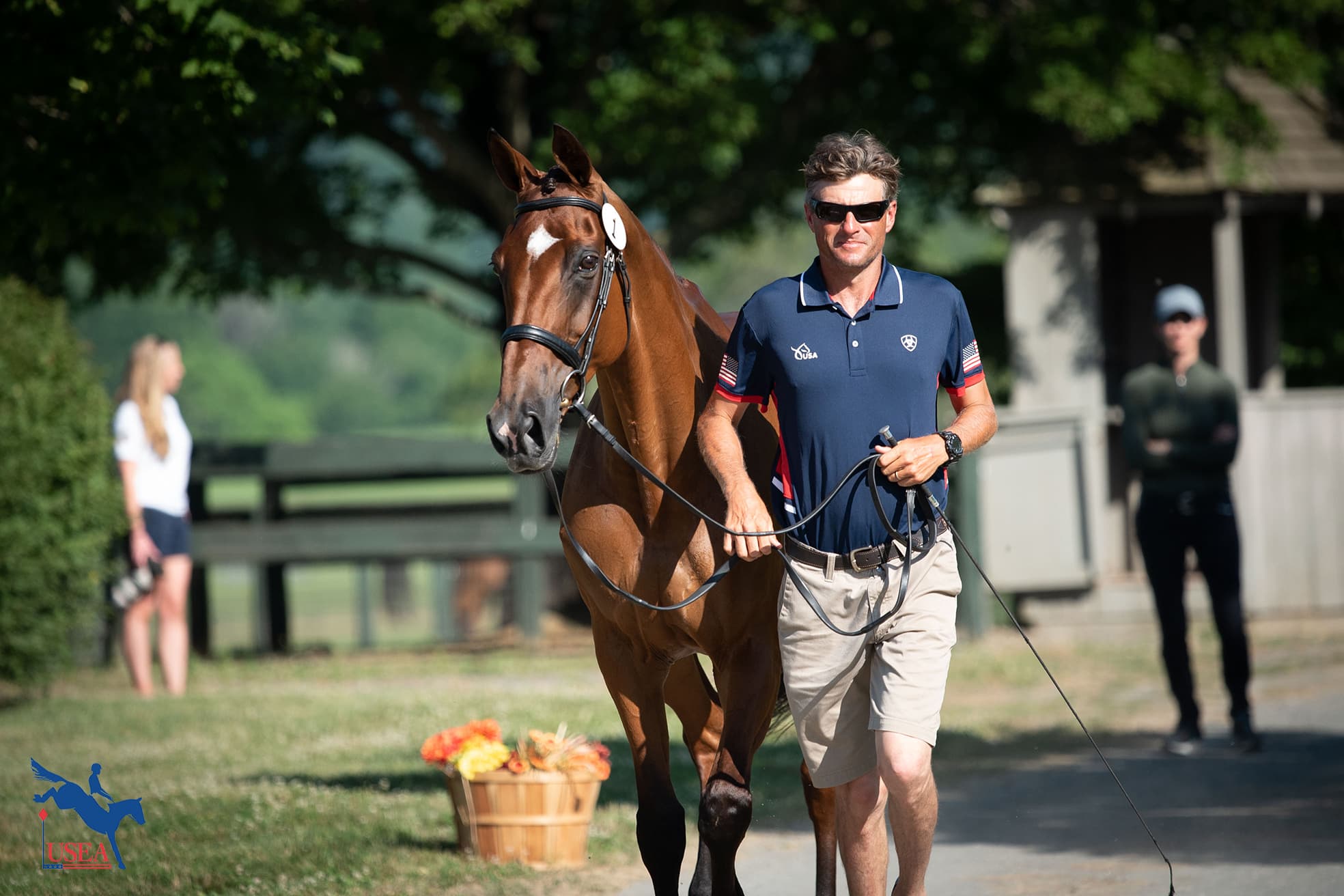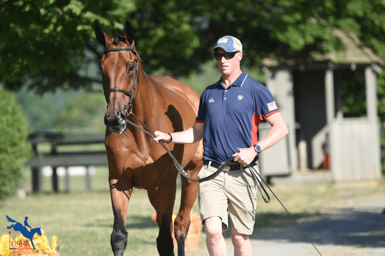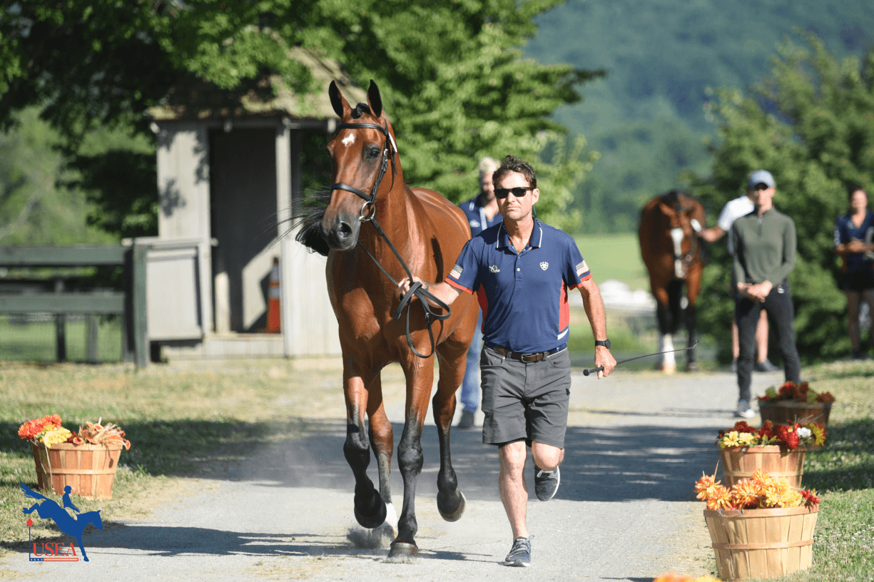 It was a hot and humid first day at the U.S. Eventing Mandatory Olympic Training Session at Great Meadow in The Plains, Va. A total of 12 athlete-and-horse combinations went down the jog strip, with 11 of those combinations representing the U.S. and one combination representing Canada, Colleen Loach on Qorry Blue d’Argouges. After this evening’s horse inspection, all 12 combinations will move forward to tomorrow’s cross-country.
