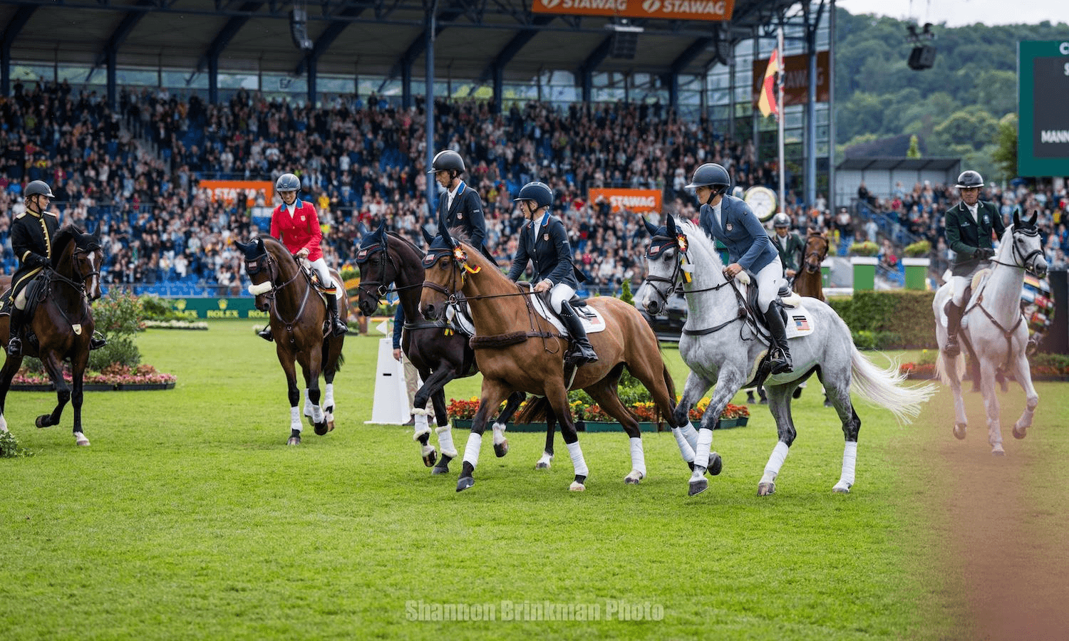 Aachen, Germany—July 7—The Defender U.S. Eventing Team moved up nearly five places on the leaderboard in the SAP-Cup throughout the three phases to ultimately clinch a well-deserved second place finish. The team completed on a final combined score of 123.7, behind Great Britain, who secured first on a 112.8. Ireland finished in third with a final score on 138. This is the second year in a row the team has secured a second-place finish at CHIO Aachen in the CCIO4*-S.