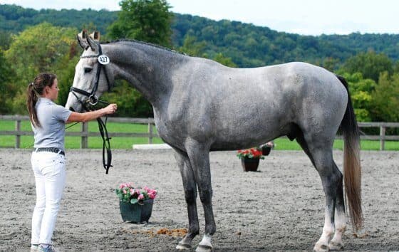 “Dorian Gray was a two-year-old stallion when I found him in a yard in Holland,” explained Erin Freedman. “I was working for Ingrid Klimke for a year and found him on my off-time and Ingrid approved so I kept him with me while finishing my time in Germany and then flew home with him in November 2010. The Waredaca Future Event Horse competition was his first show this summer and he finished second there. I recently took him to Devon where he was second in the three-year-old colts/geldings class with a 77 and then moved on to be Grand Champion in the USDF Colts and Gelding Breeding Final. We got back Wednesday night and now we are here!”