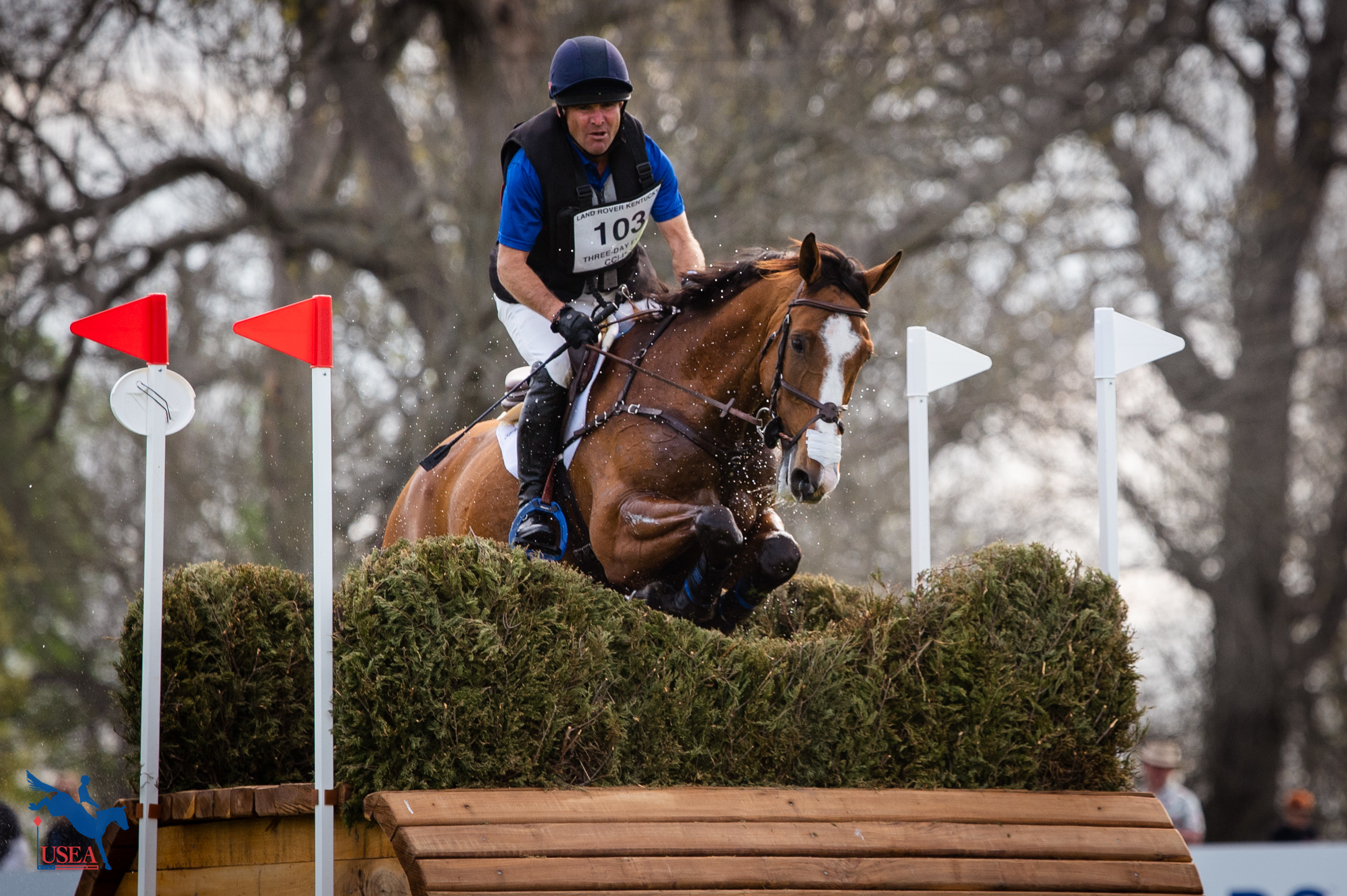 Derek di Grazia’s CCI4*-S track proved that three-day events are not just a dressage show. A total of 47 competitors went out Saturday morning to tackle the Land Rover Kentucky Three-Day Event CCI4*-S cross-country course and only one competitor put in a double clear round – Dan Kreitl and Carmango, a 9-year-old Westphalian gelding (Chirivell x Taramanga) owned by Kay Dixon.
