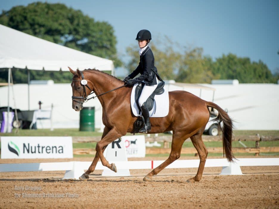 Arden Stephens performed a lovely test aboard No More Rocks to lead the Junior Young Rider Open Preliminary division on a score of 28.9. “He really doesn’t change from home to the show ring, which helps me know exactly how to ride him in the ring. He was very relaxed and happy to be here!” Stephens made the trek from Arkansas to Texas to fully partake in the championship experience. “The AEC is different from any other event because the courses are harder, the competition is more intense and the atmosphere is much more exciting,” Stephens explains.