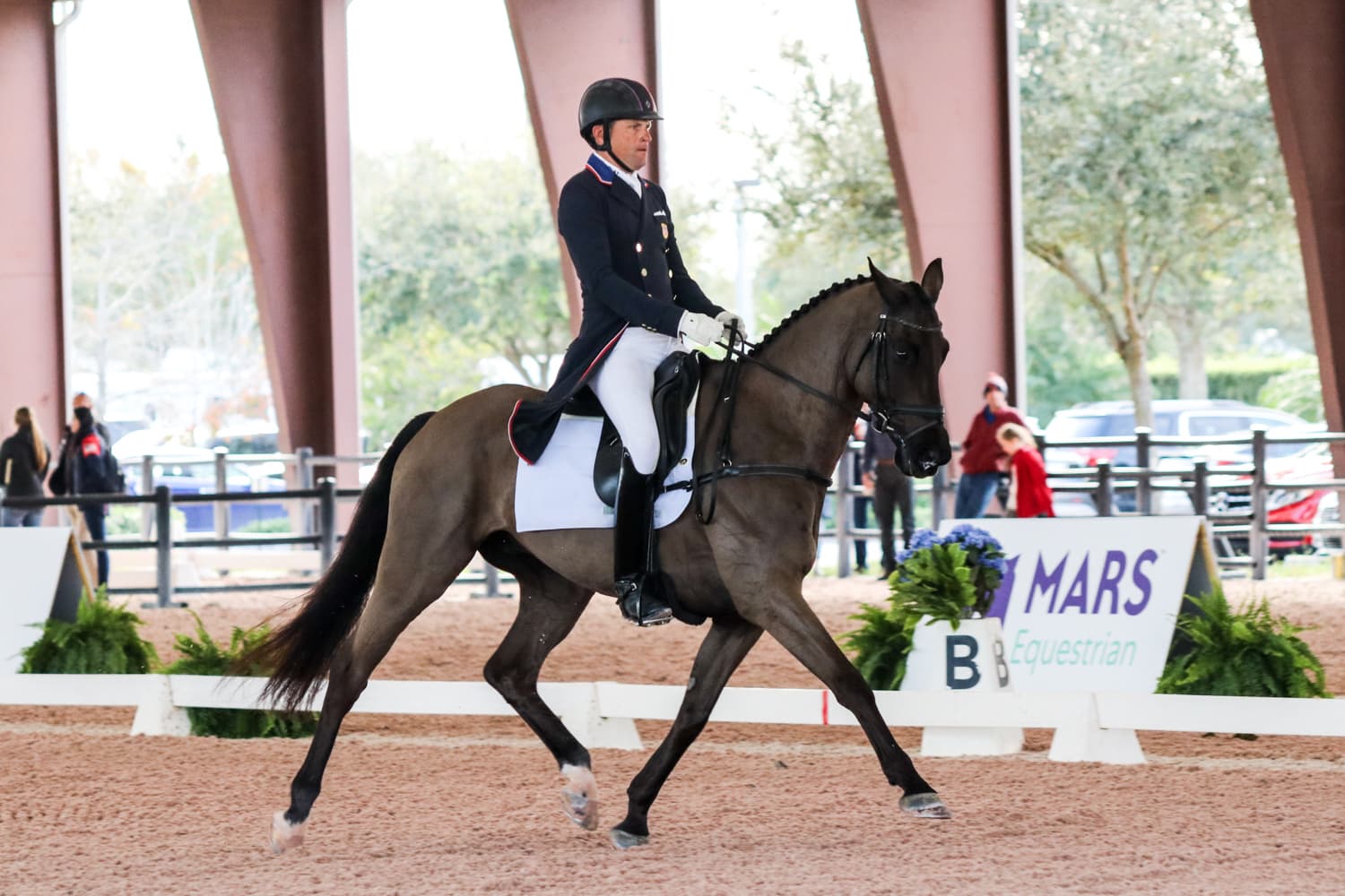 Boyd Martin rode the Syndicate owned Long Island T (Ludwig Von Bayern x Haupstsbuch Highlight) into second place on a 26.6 with a professional, expressive test. Despite just returning from injury Martin has maneuvered himself into a good position to grab a third Wellington title. The 14-year-old Oldenburg/Thoroughbred gelding is aiming for Kentucky or Luhmühlen this spring, his first attempt at the five-star, but he doesn’t have the best track record at the showcase.