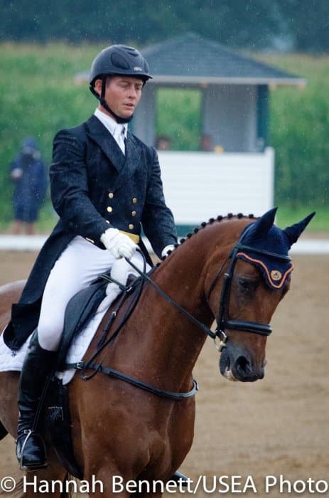 However, despite the doom and gloom, several pairs were able to rise above and execute a test that was worthy of a top spot on the leaderboard. Currently leading the charge is none other than Phillip Dutton, riding Team Rebecca LLC’s twelve-year-old Holsteiner gelding, Ben. The pair put in a flashy, yet extremely accurate test, earning them a penalty score of 41.8. Ben seems to have found quite a comfortable home at the top of the leaderboard lately- his impeccable record over the last few months includes a win at the Bromont CIC3* in June, and a third place finish at the CHC International CIC3* in May. Earlier this year, the pair placed third in the CIC3* at the Red Hills Horse Trials in Tallahassee, Florida.