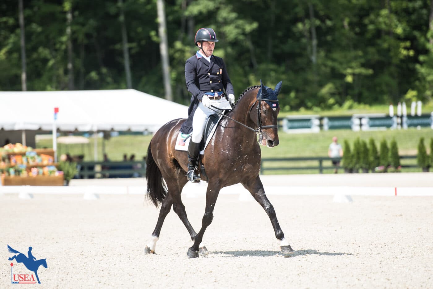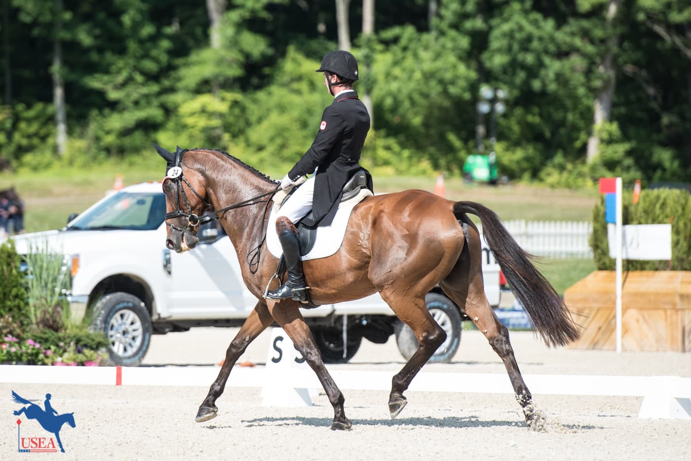 Phillip Dutton and Kristine Norton’s 13-year-old Dutch Warmblood gelding I’m Sew Ready (Lupicor x Jarda) scored an even 42 with the last ride of the day to slide into the lead individually and propel the U.S. team to the top of the FEI Nations Cup™ leaderboard following the completion of dressage this morning at the Great Meadow International CICO3*, Presented by Adequan®.