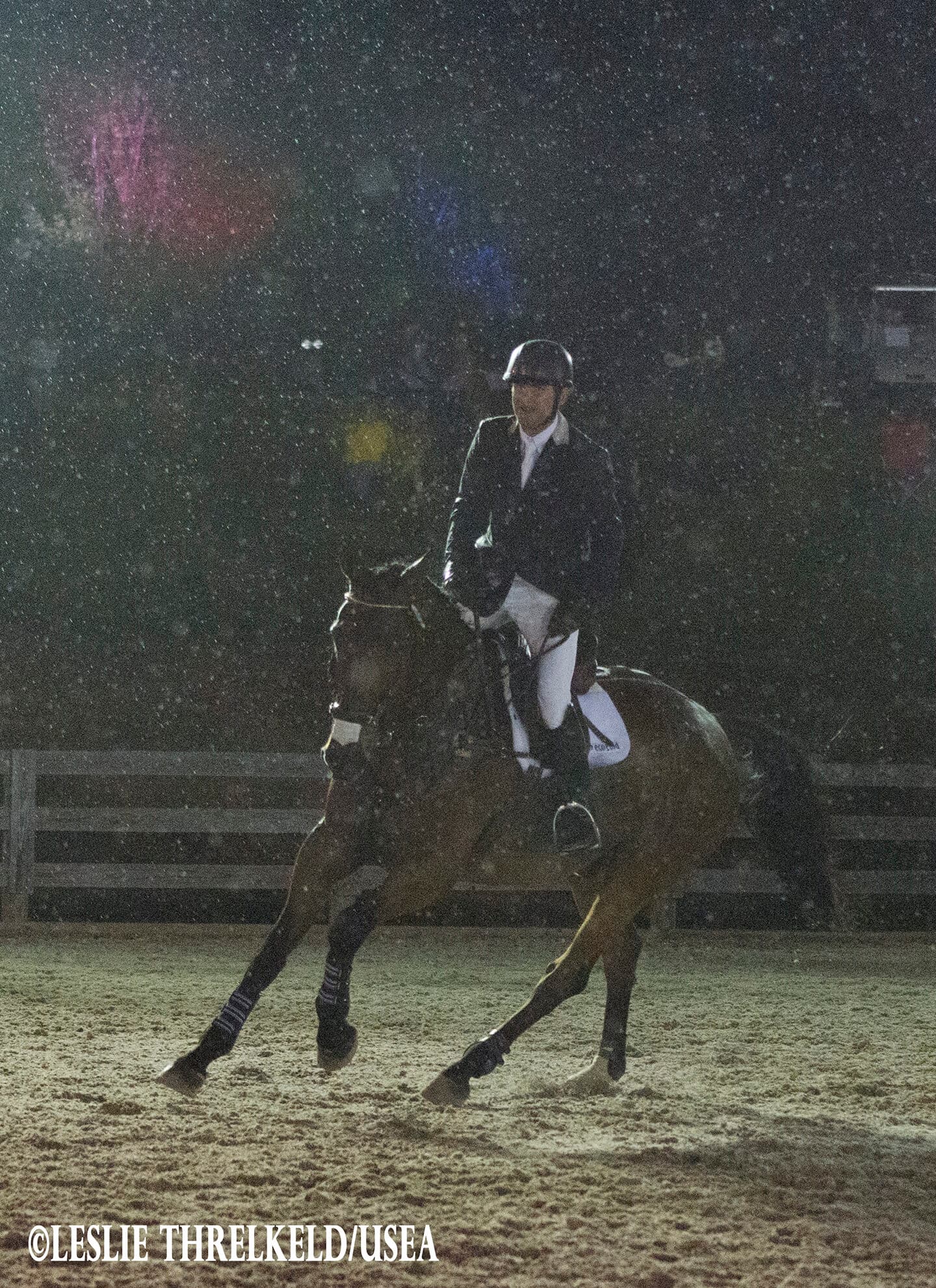 With cross-country still to come this afternoon, Phillip Dutton and William Penn lead the Adequan USEA Gold Cup and PRO Tour Series CIC3* division at the CHC International at Bouckaert Farm, Fairburn, Georgia. They were the last dressage test of the day yesterday and flew into first with a 42.4. Last night, during show jumping under the lights, Dutton and William Penn jumped a clear round on a tough course with just two time penalties to add to maintain their lead before cross-country. Lauren Kieffer and Veronica moved up from fourth to second after show jumping with a lovely round, posting one of only two double-clears in the division. The atmosphere in the dressage yesterday, with the VIP tent situated just a few paces from the ring, flags flapping in the wind behind the judge's stand at C, and cross-country fences placed just outside of the arena rail had many horses struggling to hold it together. The show jumping also posed a unique challenge, with the ring illuminated from tall lights casting spooky shadows and the movements of unseen spectators outside the rail, not to mention the rain that began to fall at the start of the three-star division. Those riders that attacked every fence had the best rounds. The rain comes and goes sporadically today, and we're looking forward to an exciting finish to the CIC3* this afternoon at the inaugural CHC International.