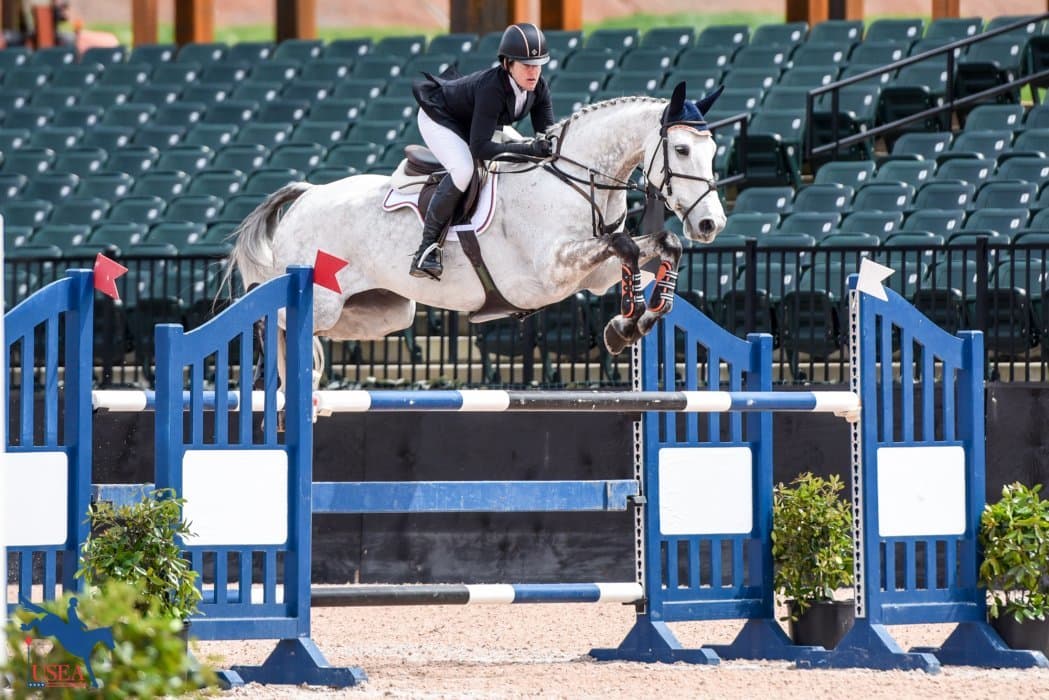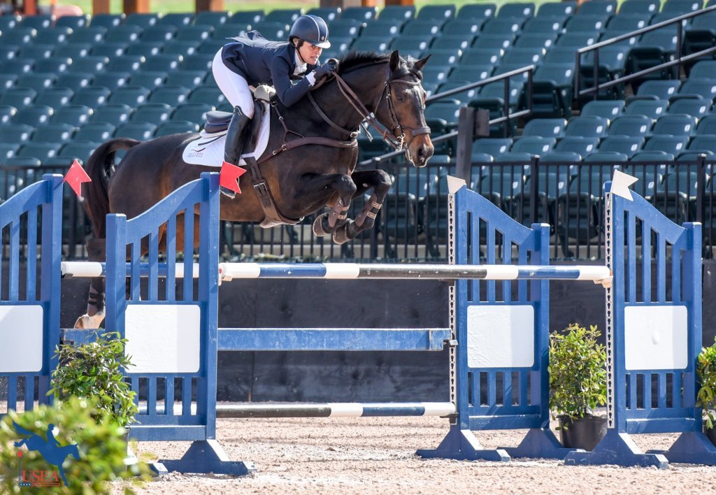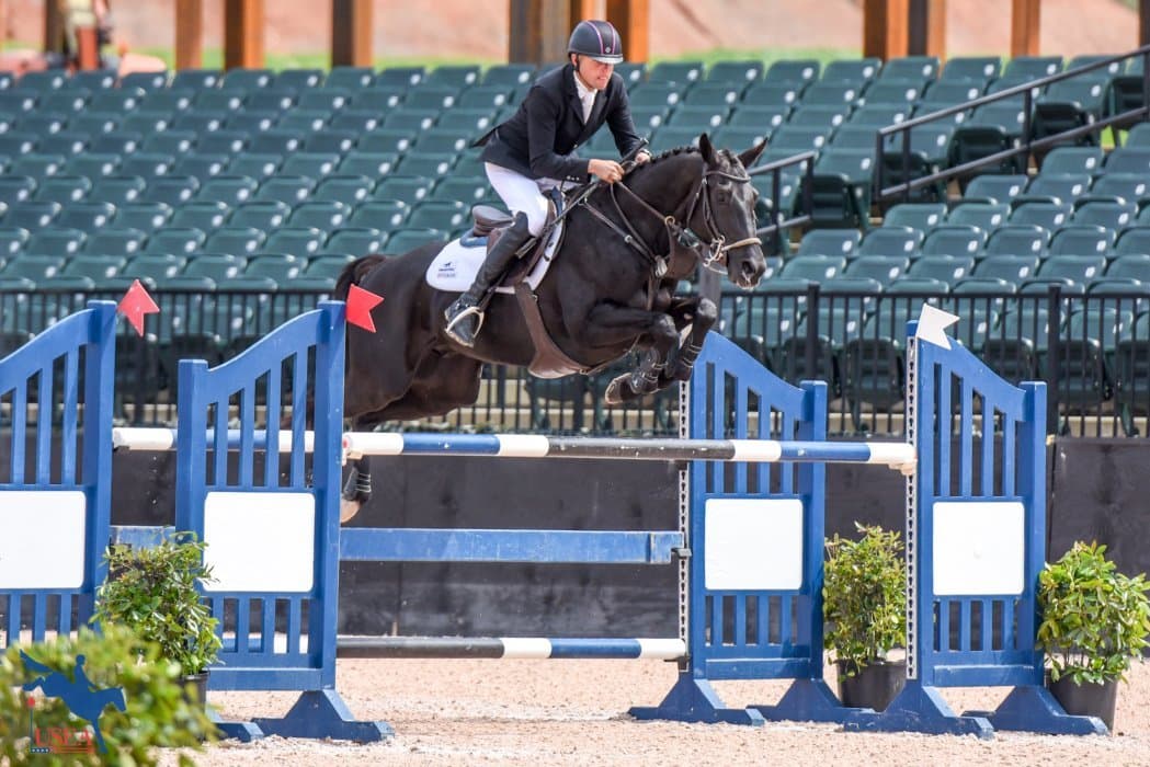 Kim Severson and the Cross Syndicate’s 11-year-old Irish Sport Horse gelding, Cooley Cross Border (Diamond Roller x Whos Diaz), moved up from fifth place to finish in second with their double clear round.