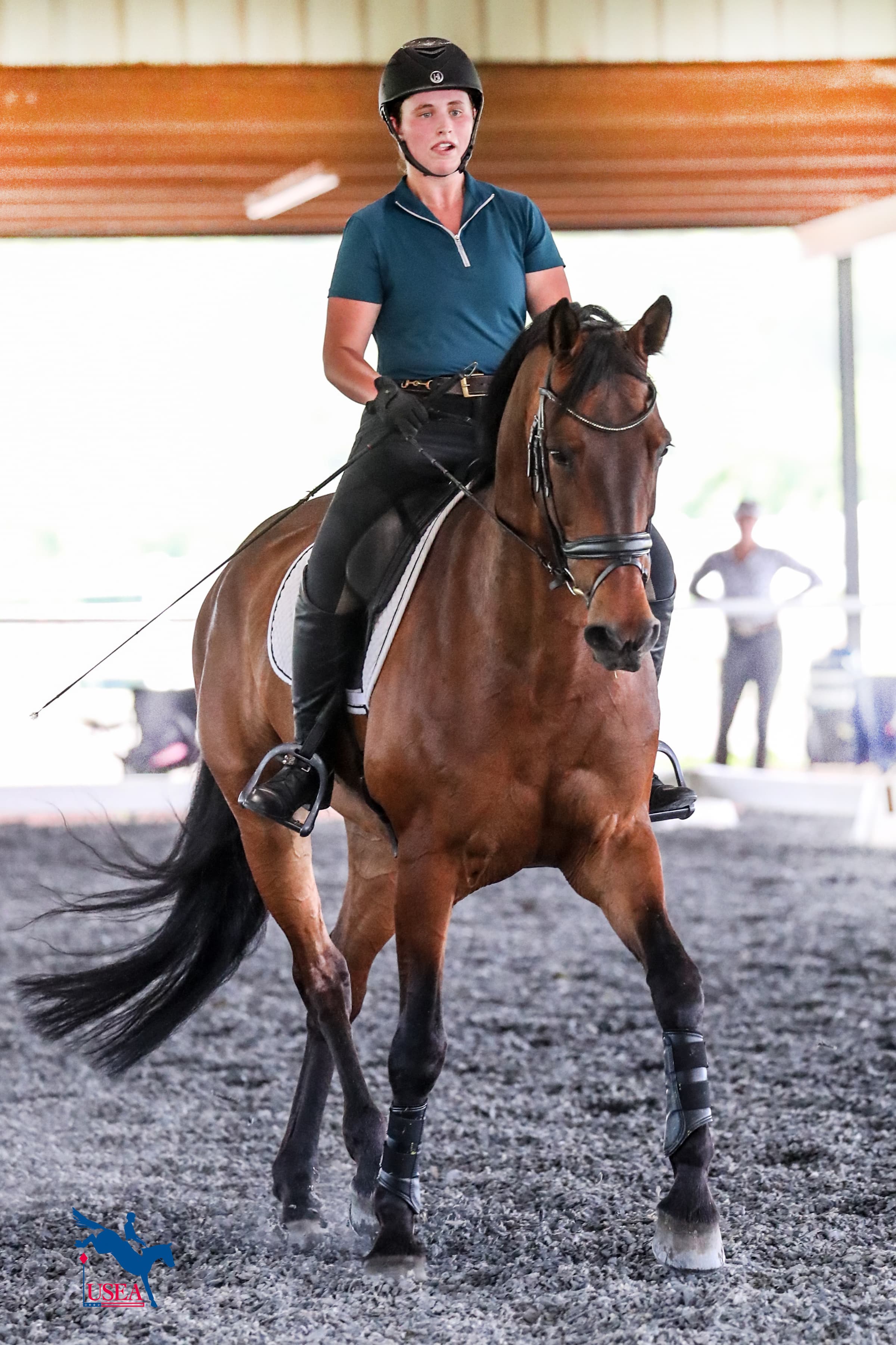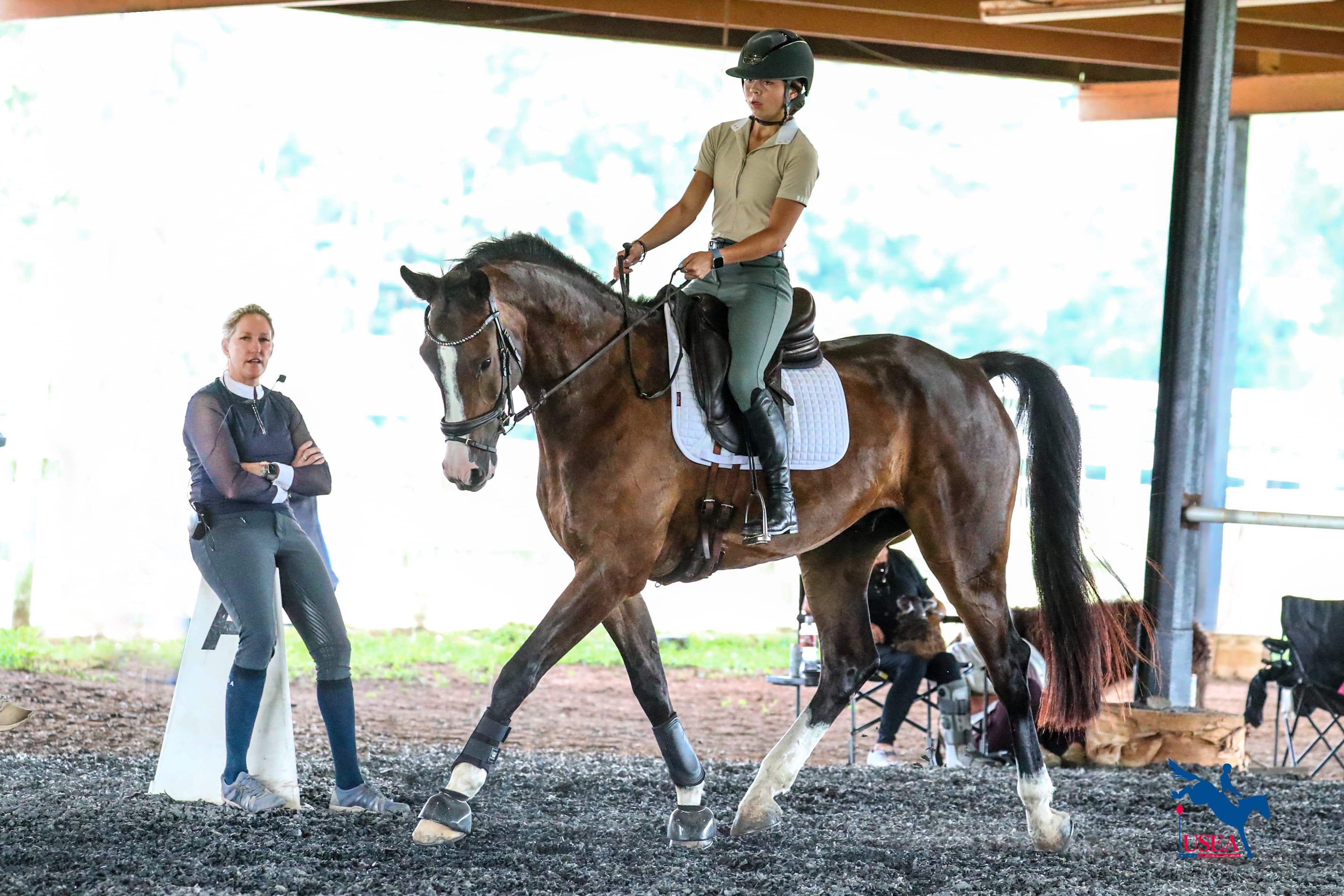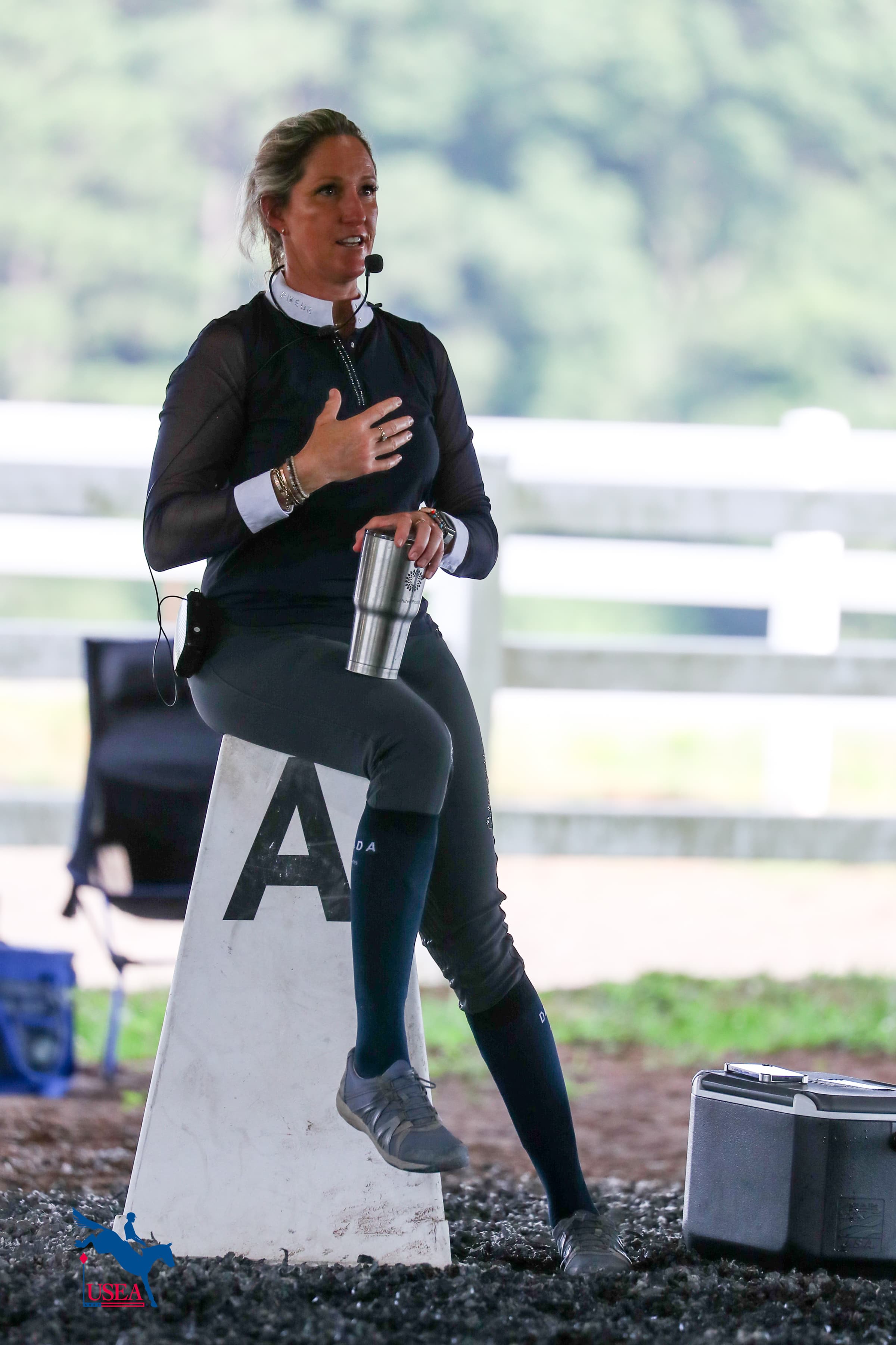 The Day 1 dressage portion of the clinic consisted of an emphasis on fine tuning the foundational basics of riding. Braitling emphasized that, “riders should be conscientious straight away when getting on,” and that it’s all about the movements and how to develop these to the highest degree. She stressed, “ride with intent, and picture it every time you get on.” This is how theory and goals come together as the stepping stones of what’s next in the real world of eventing.