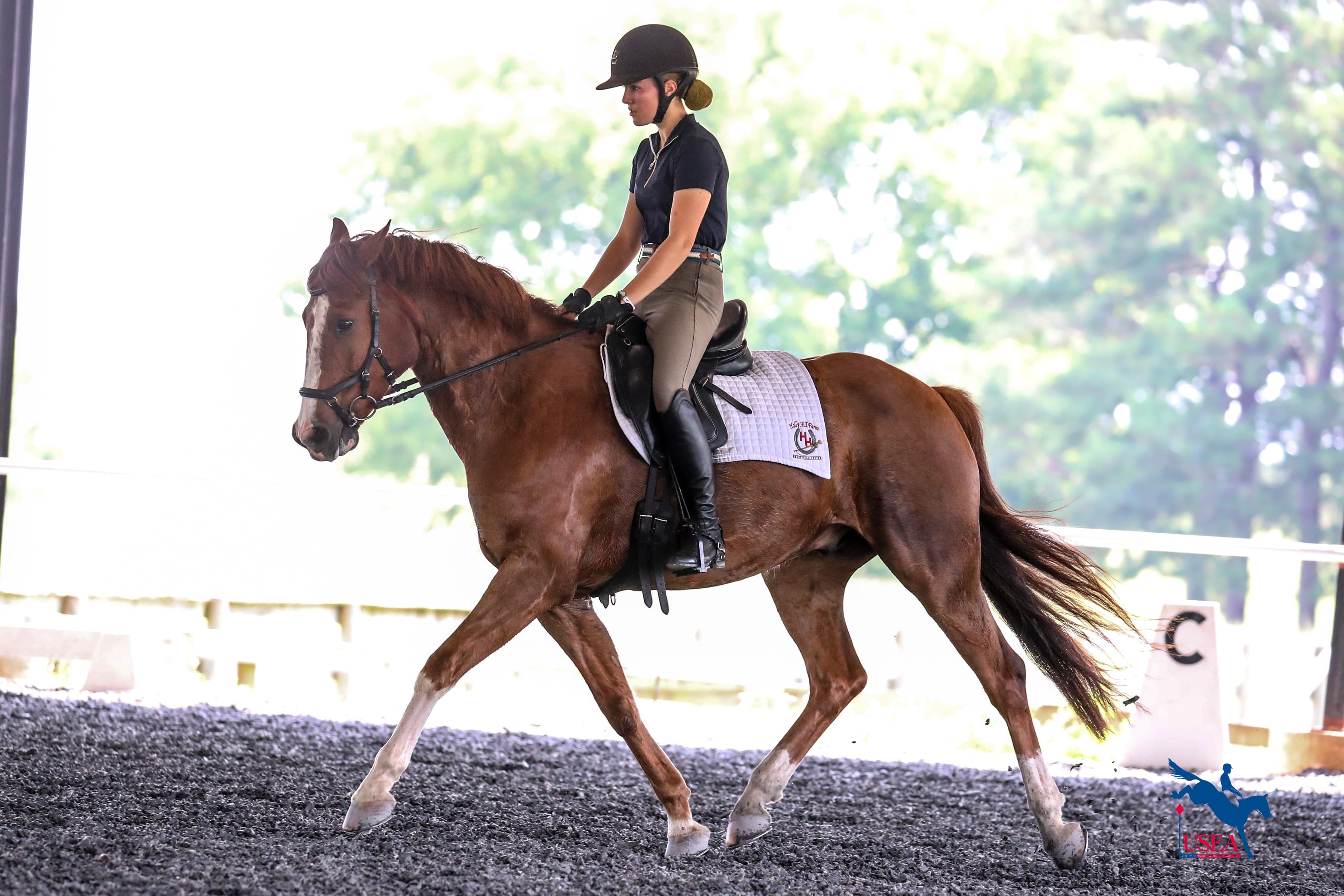 It was suggested to Camila Saenz, group 4, as a helpful strategy to develop a focal point on rhythm possibly by repeating a 1,2 1,2 pattern. Sylvia Byers, also group 4, was advised to ride more on her seat bones, and then practiced how to canter around orange cones and other objects placed in specific places and reminded to keep that visual in mind when performing circles.