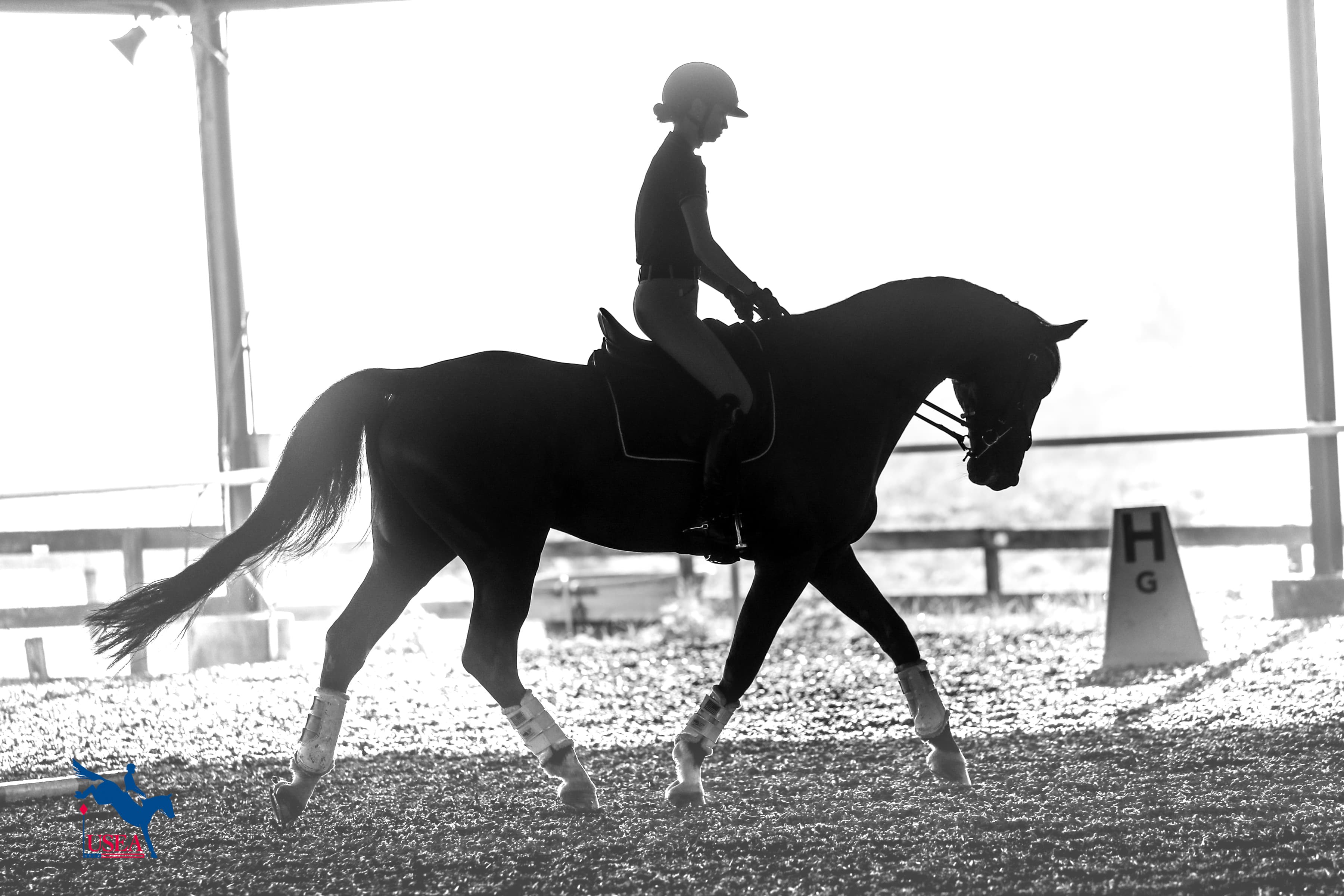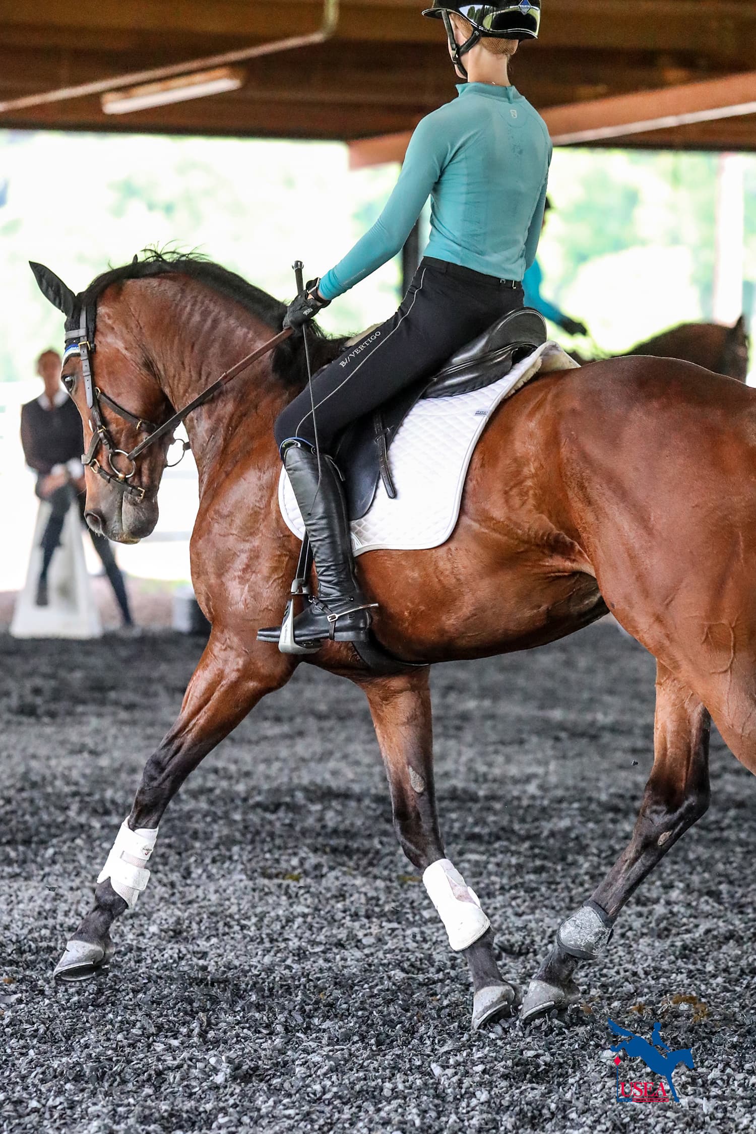 Several other additional skills were advised and then practiced to fine tune riding to the next precise level. Leg yields were implemented to help elasticize and bend the horse, thus Sierra Fishell from the first group incorporated this strategy to achieve a more forward bend to the outside of her leg yield while also achieving a relaxed thigh off the saddle.
