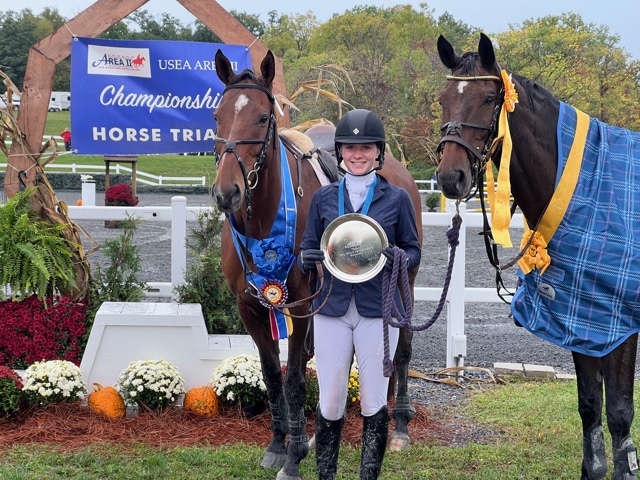 The USEA Area II Championships were a little extra special this year as the Maryland Horse Trials was also host to the Mandatory Outing for the 2023 Pan American Games team. Riders of all levels got to ride alongside U.S. team representatives, adding a little extra luster to this year’s event. This year, there were eight new champions crowned at the Preliminary, Modified, Training, Novice, and Beginner Novice levels in Area II. Get to know each of them a little better below.
