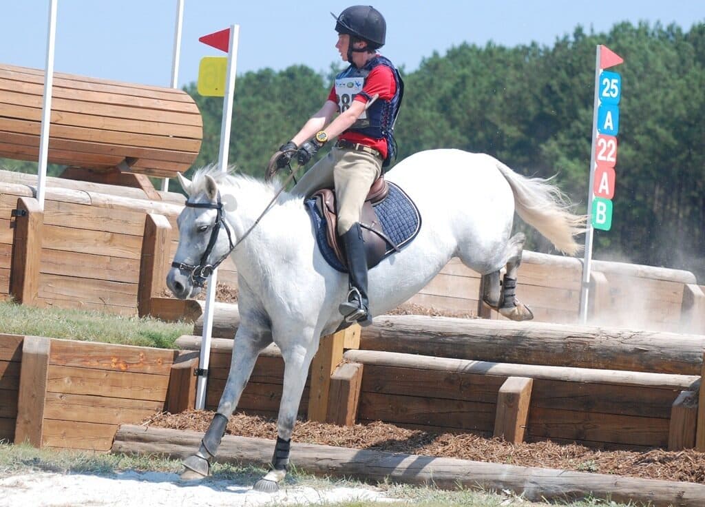 My son took his pony club D1 rating on her and a few months after we got her, he rode her in his first-ever event ...walk/trot dressage & cross rails for jumps! Suzi Q took Andy on many adventures, including ski joring and Halloween hunter paces and 4th of July parades.