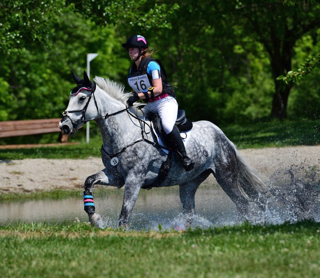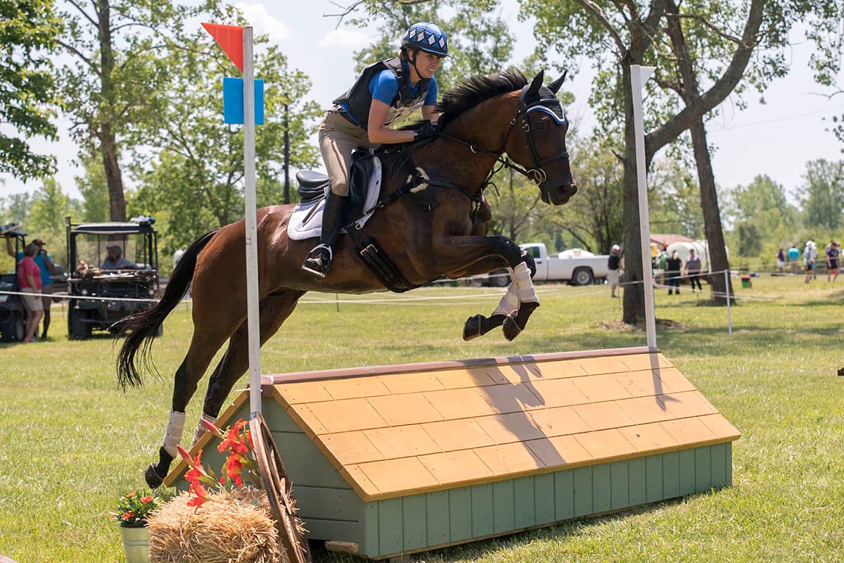 Erschen, 20, from East Dubuque, IL, which is just across the river from Iowa, had a great ride her 7-year-old German Sport Horse gelding FE Gran Torino and talked about how she found “Clint” and what they’ve done together so far. “Last year in February I got him from Clayton Fredericks. When I bought him he’d only done one Training in the U.S. So, last year did a year at Training and this year we moved up to Preliminary and we’ve done about five Prelims. But he needed a step down, because he doesn’t always focus on cross-country. So the Training Three-Day really helped him. The reason I came here was so we could do the roads and tracks and the steeplechase. It helped. He felt like a different horse on phase D.”