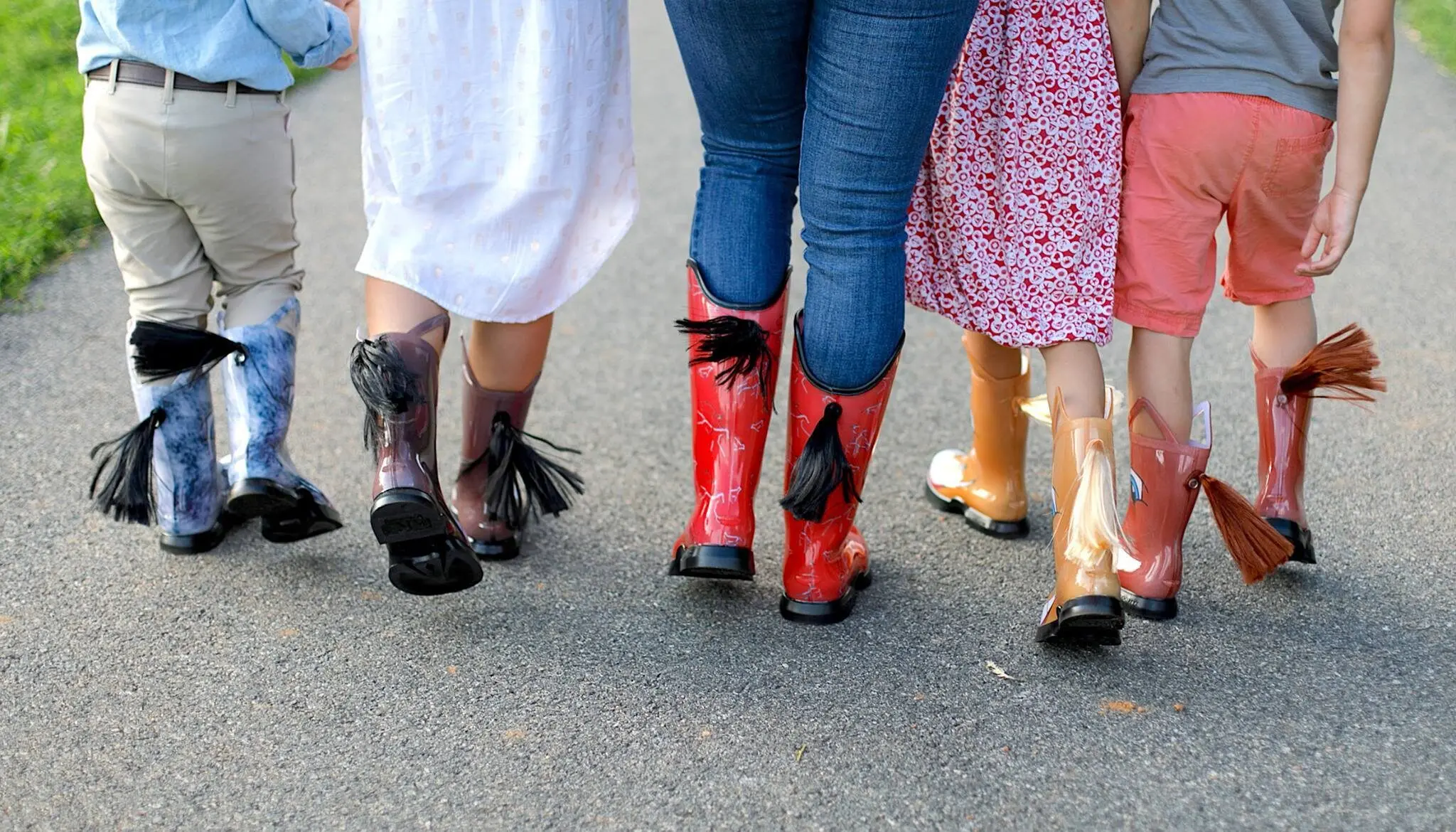 HOOFiTZ® are bright, cheery, equestrian-themed rain boots for children and women. Boots geared toward the horse-loving kid in all of us. They have a patented sole design that mimics the grip, flexion, and balance of a horse’s hoof. It acts as a natural cushion to ground impact and pushes out mud and dirt naturally. The concave sole shape produces a natural grip for any terrain and leaves a hoof “print”. Each pair also comes with a detachable tail.