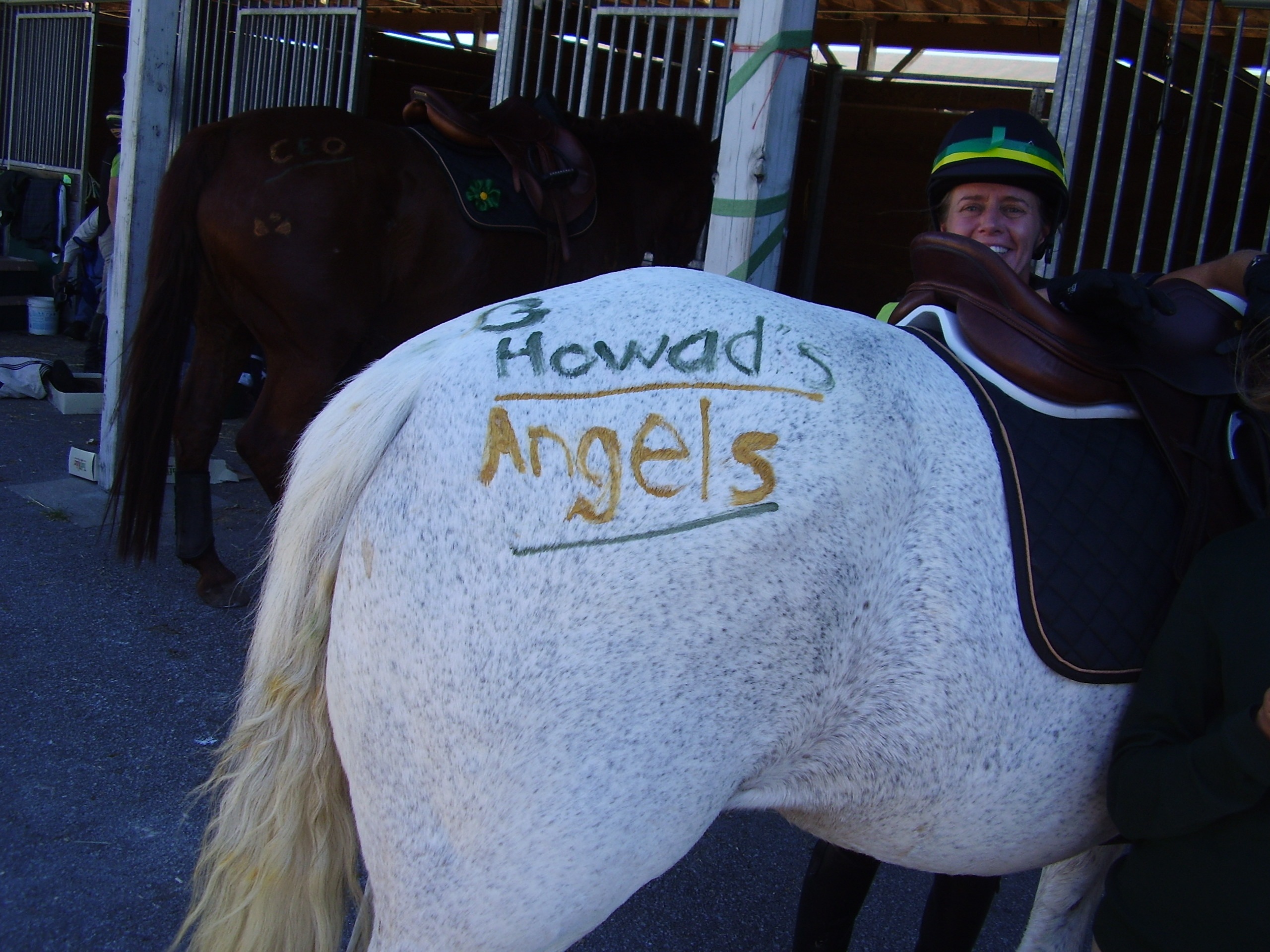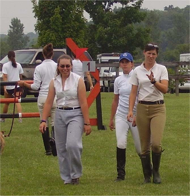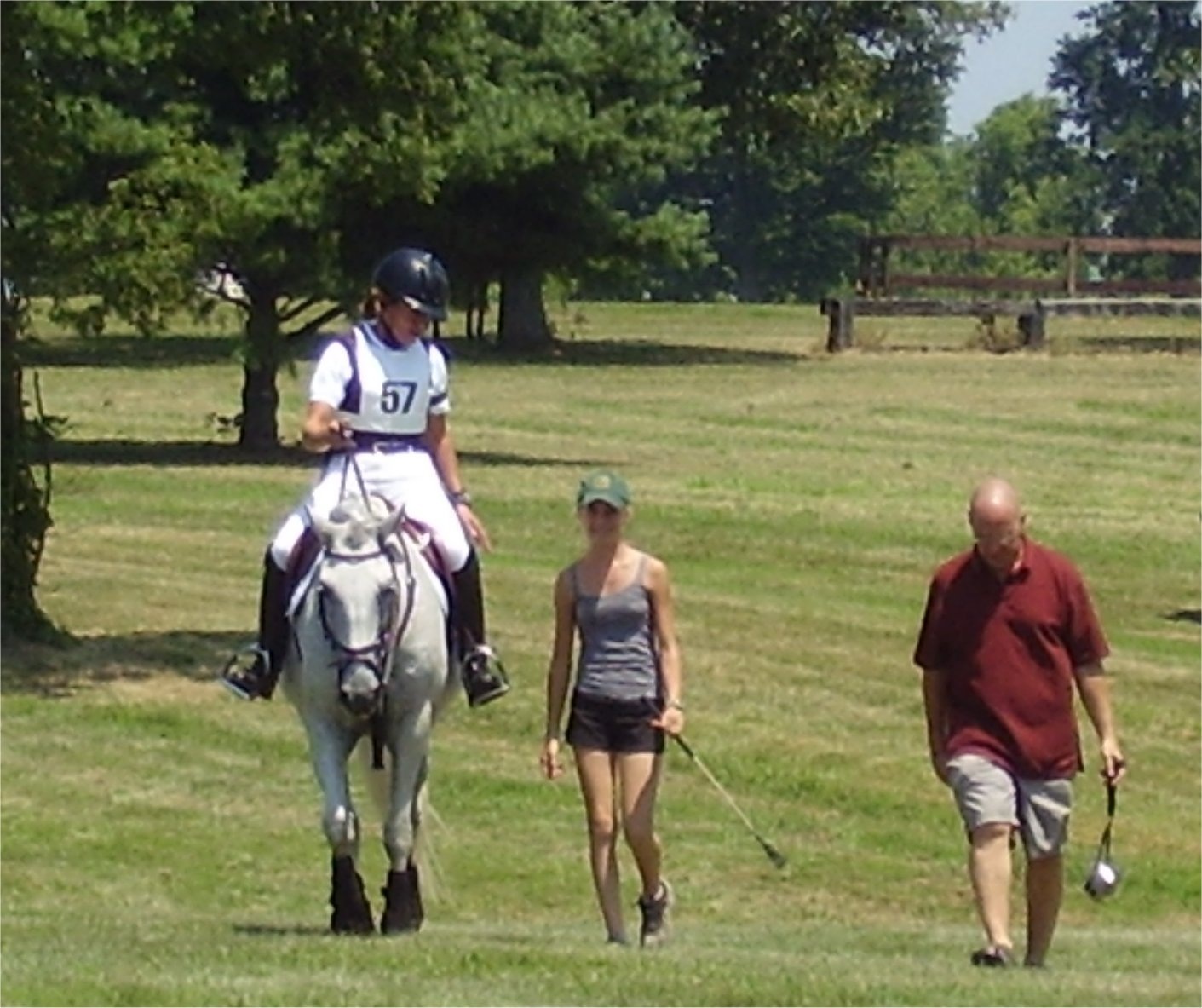 Once she got back in the saddle, she’s proven to be the most dedicated rider in the family. She didn’t originally have any interest in showing, but we convinced her to ride in our farm CT. Then she did our farm HT. And then she did a local show (she’s shown below right after her successful XC round, walking back from the finish with Ali and Hank.) And she was a star on our TeamCEO “Howard’s Angels” team (somebody failed the spelling test) at the Mid-South Team Challenge at the Kentucky Horse Park – riding in her first recognized event in what’s usually the toughest Novice horse trial of the year in Area VIII.