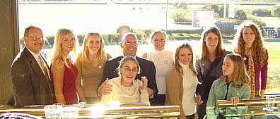 Hank’s also a very perceptive individual; Megan had a fall in 2005 which knocked her out of Fair Hill only a week before the three-day. On the weekend when she should have been competing in the penultimate event of her career, Hank distracted her from depression and the “why me’s” by hosting the TeamCEO family in the Jockey Club box at Keeneland (pictured at left with the home stretch in the background). I owe Hank a big debt for that special celebration. I noted earlier that Hank (mostly) doesn’t ride. We have gotten him on TeamCEO horses but those pictures are classified (aka, blackmail). And if you run into Hank at an event, ask him about the family dude ranch outing this past winter.