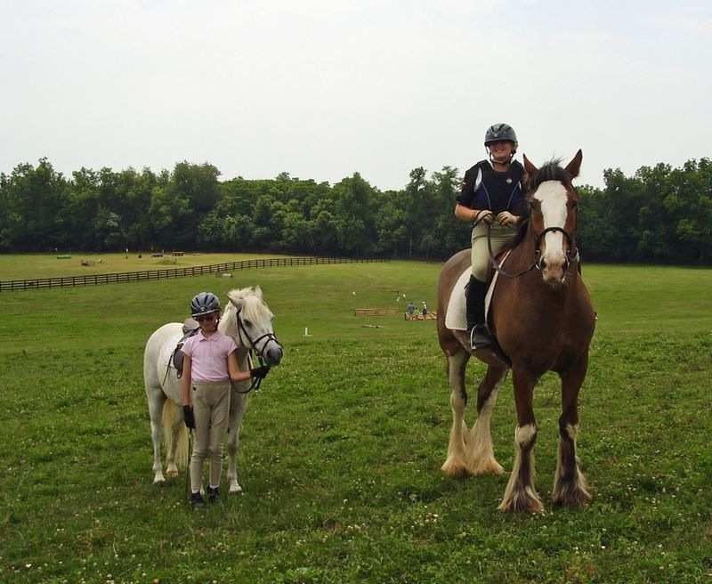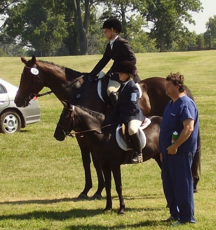 The pony is Mighty Mouse, Megan’s first eventing ride 16 years ago who teamed with her to win 5 Kentucky 4-H state championships, Gold and Bronze medals at the Kentucky State Games, and who evented successfully against the big horses through Novice. It’s his job to teach the next generation of riders (pictured left), but to me that will always be little Megan on the pony (pictured right). Finally, the man standing beside the riders is Dr. Mike Goodwin. He’s unshaven, still in scrubs, because he’s come straight to the horse show after working all night in the hospital. His family is more important than sleep, comfort, or appearance.