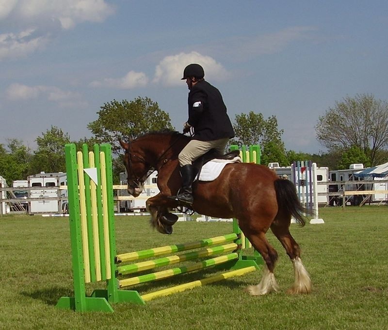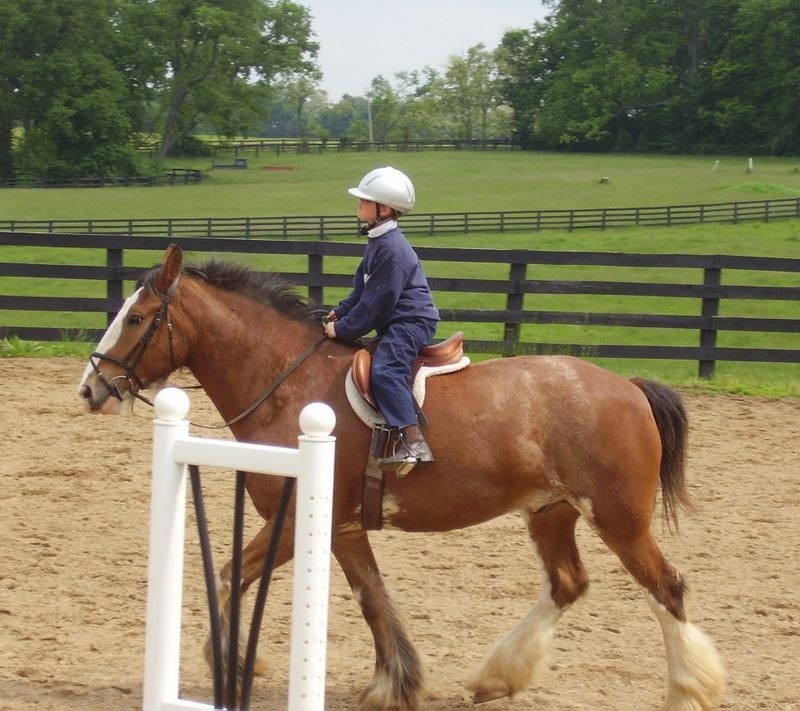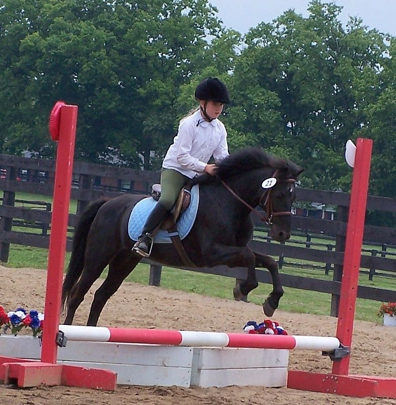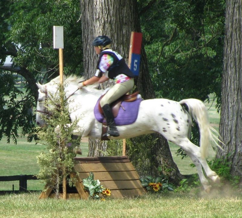 When Hannah was ready for her own pony, she picked Pongo, a grade Appaloosa we developed from an unbroken 4-year old. After the working students competed him for a year, he became the most reliable mount we’ve ever seen. He understands he must carry his rider, that she must be safe and centered in the saddle, and he must jump whatever he’s pointed at. Hannah and Pongo are shown (pictured left) competing at Champagne Run at the Kentucky Horse Park.