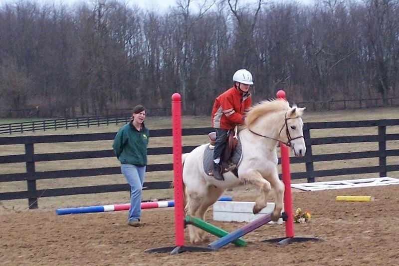 Until now, Joe hasn’t been as enamored with riding as Mike or Hannah, frequently being more interested in our dogs or the cats or digging in the dirt. But our recent Pony Camp has re-ignited his interest – maybe the horse, or maybe the young lady who was also participating? Joe rides Zack, an 11 hand grey pony; the pair are (pictured right) at a lesson this winter. He finished our farm show last year and was quite competent showing in this year’s horse trial.