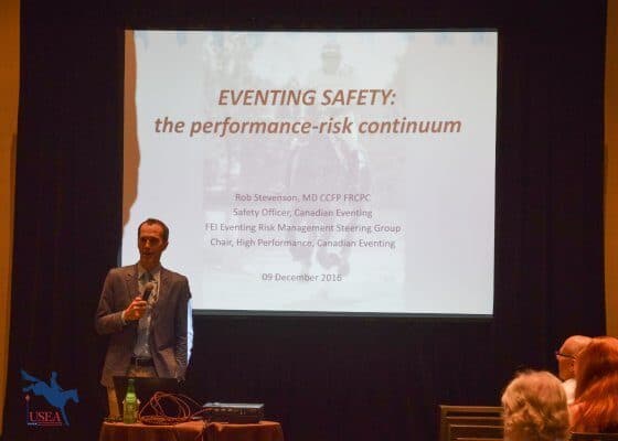 Equestrian Canada’s Chair of the Eventing High Performance Advisory Group and National Safety Officer Dr. Rob Stevenson joined the discussion on equestrian safety at the USEA Convention this afternoon with a seminar on The Eventing Risk Management Continuum.