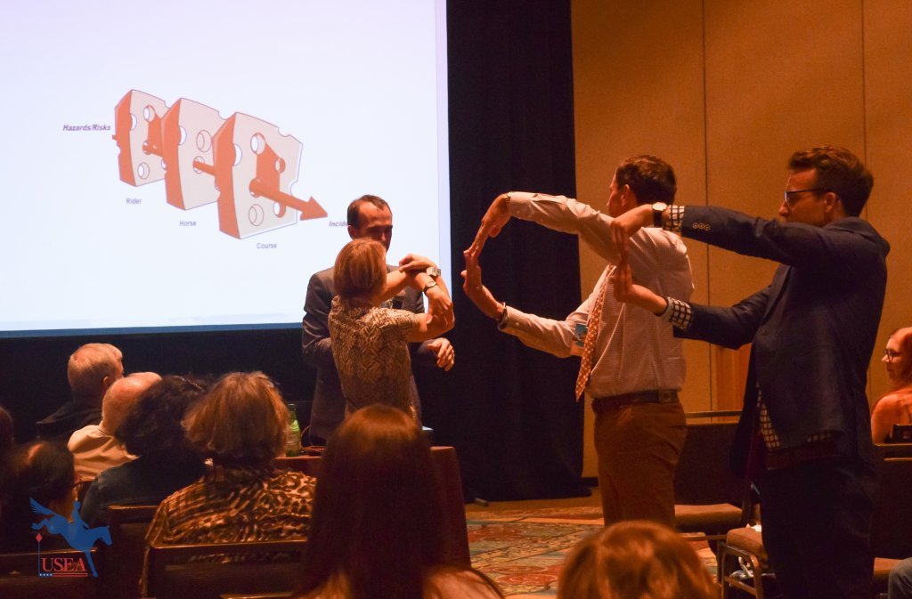 Participants demonstrate the Swiss Cheese Theory of Risk Management. USEA/Shelby Allen Photo.
