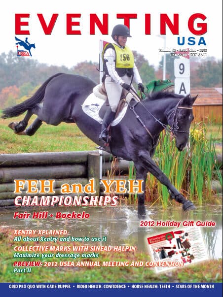 You no longer need to opt in to receiving the magazine when you renew your USEA membership – you’ll receive it automatically. So, don’t forget to update your USEA membership for 2013 if you haven’t already. A Full membership costs $85 annually, but you can become a Supporting Member for $35 and receive a subscription to the magazine as well as the electronic newsletters. Go online to the Membership webpage or contact the Membership Department by emailing Jennifer Hardwick at [email protected] or calling 703-669-9993. Want to purchase extra copies for family and friends? Individual issues of the magazine may be purchased for $5 apiece at the USEA Web Store.