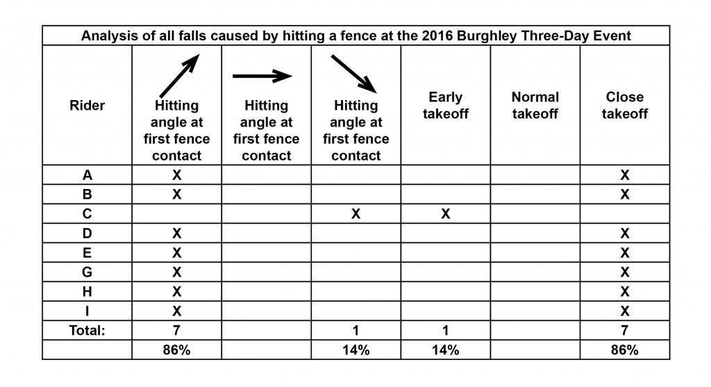 An analysis of falls at the 2016 Burghley CCI4* caused by horses hitting the fence was created by Anders Flogård of MiM.