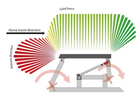 To stop horses rotating, the fence needs to absorb the impact. Some fences naturally absorb the impact of a horse hitting it, such as brush fences used in the racing world. Due to the construction of cross-country fences, it has become necessary to use deformable safety devices to reduce the risk of rotational falls occurring by reducing the force. Thus entered the idea of frangible fences.
