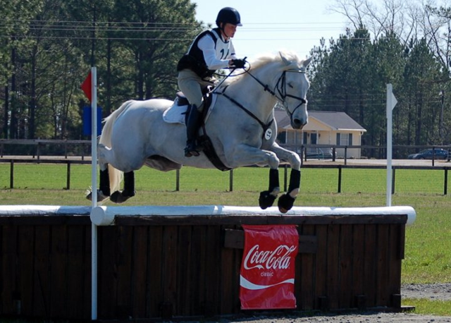Kim Severson and Tipperary Liadhnan looked confident as they entered the new grass show jumping arena in the lead at the Carolina Horse Park on Sunday, March 21, 2009, but the big grey Irish gelding knocked three rails out of the cups to finish second to Becky Holder on Courageous Comet in the advanced A division at the Southern Pines Horse Trials II.
