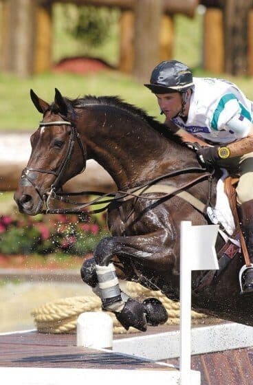 Two years later he wasn’t picked for the Australian team going to the WEG, but was sent as an individual. Had the Aussies put him on their team they would have fared considerably better because Doc finished the competition fifth overall. I suspect that he would have finished even higher, but the cross-country had taken a tremendous toll on him: he had torn part of a hind hoof off and had done something else up front. We iced him the entire time we were allowed in the barns after cross-country and he passed the jog. Show jumping wasn’t his best, but considering everything, he did great!
