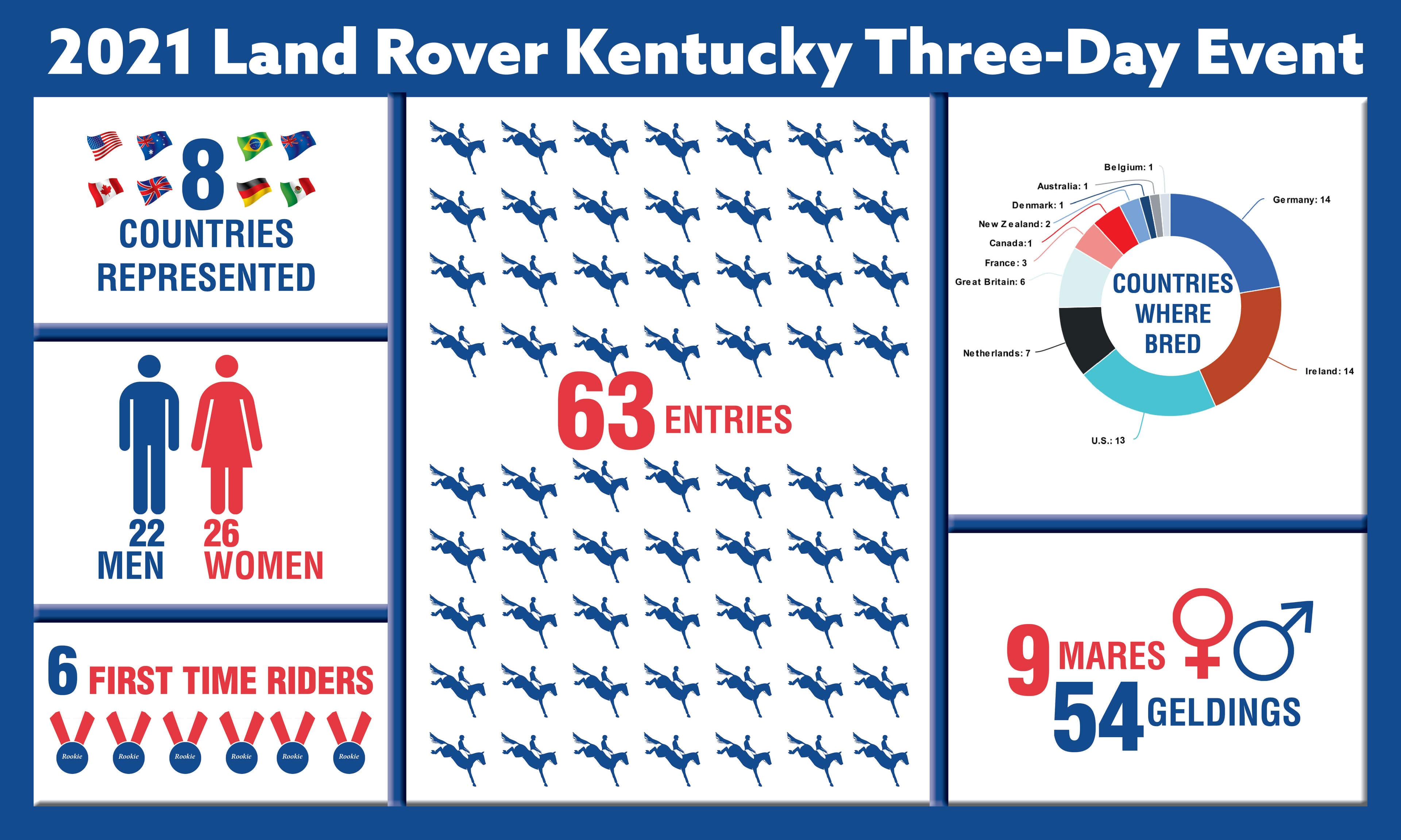 - Germany and Ireland tied for breeding the most horses with 14 each and the U.S. with 13.