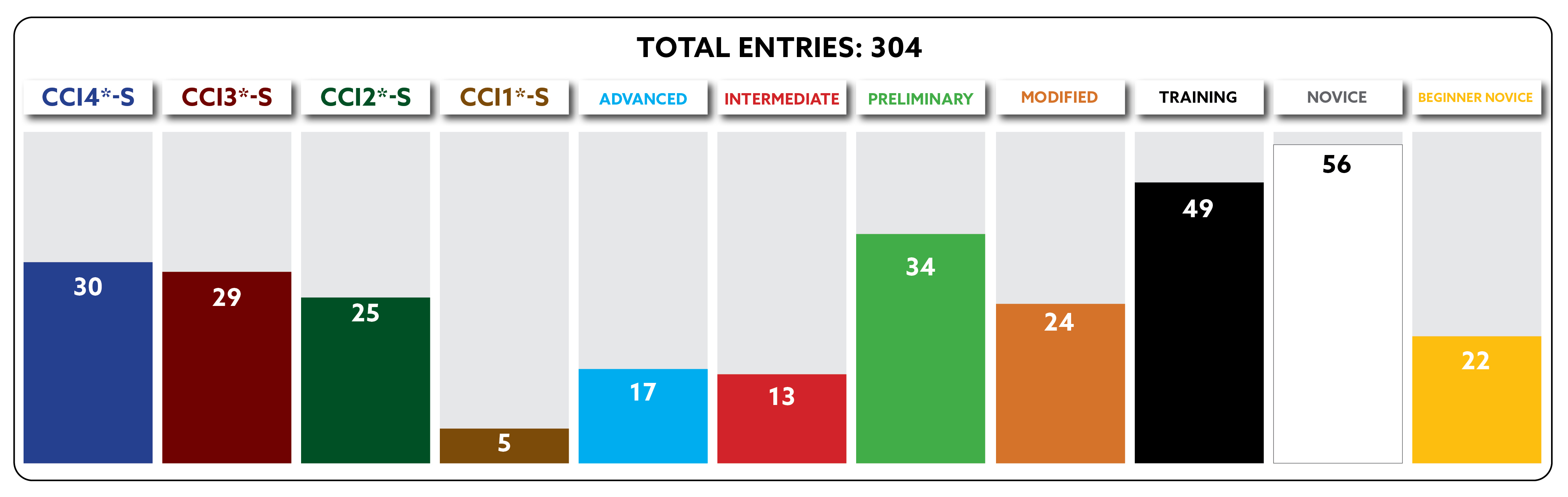 - There are 304 entries for the 2021 edition of The Fork, 126 more than competed in 2019. However, the CCI4*-S numbers remained steady with 30 competing in 2019 and 30 again this year.