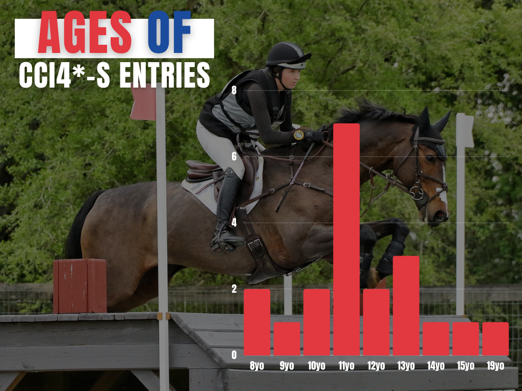 - The title of youngest horse in the field is a tie between the following 8-year-olds: Caroline Martin’s own Thoroughbred gelding HSH Double Sixteen (Robin Des Pres x Azaria) and Elinor Macphail O’Neal’s homebred German Sport Horse mare Redtail Penumbra (Cevin Z x True Dynamite) ridden by Alexander O’Neal.