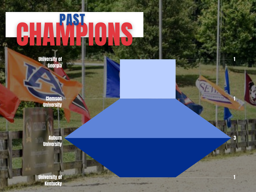 - All four schools that have previously won the Championship title are entered to compete this year: the University of Georgia, Clemson University, Auburn University and the University of Kentucky.