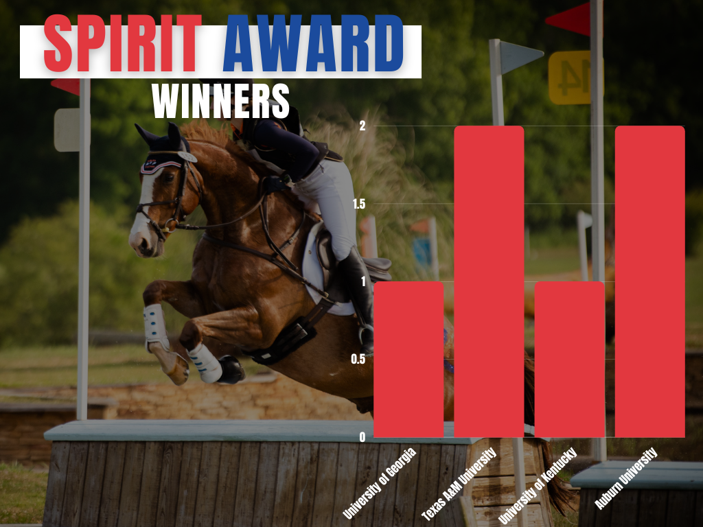 - While the Championship title is the ultimate goal, the Spirit Award competition is just as highly regarded, if not more! With two-time winners Texas A&M (2017, 2019) not in attendance this year, defending champion Auburn University may be looking to make it a three-peat on Spirit Award wins this year. However, former title winners University of Georgia (2016) and University of Kentucky (2018) will be looking to take back their wins, as the two schools with the largest number of entrants at the event this year. Click here to learn more about this year’s Spirit Award criteria.
