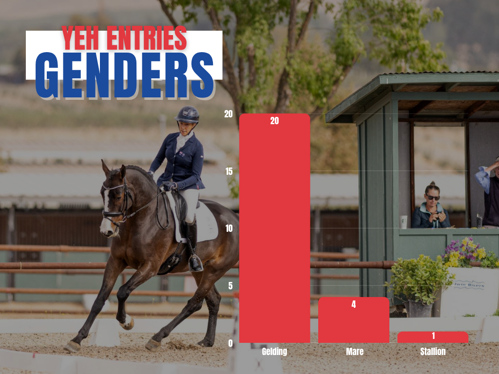 - Geldings reign supreme again this year with only four mares and one stallion entered alongside 20 geldings.