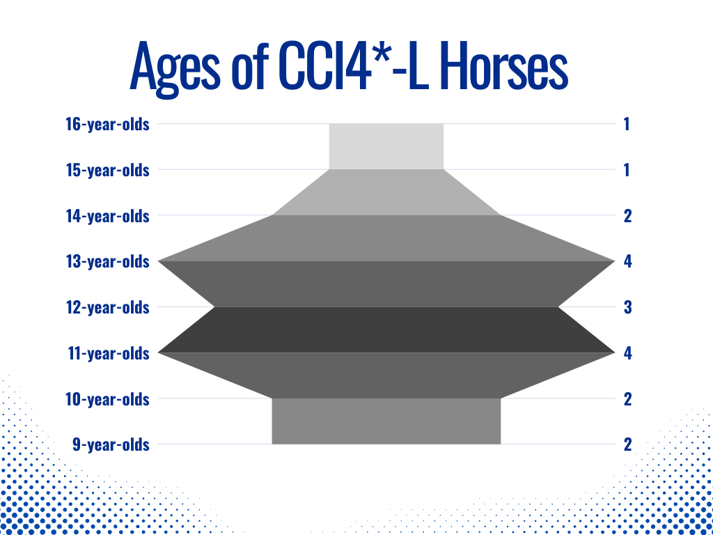 - Of the 131 horse field 19 are entered in the CCI4*-L, 18 in the CCI4*-S, 34 in the CCI3*-S, 41 in the CCI2*-L, and 17 in the CCI2*-L U25.