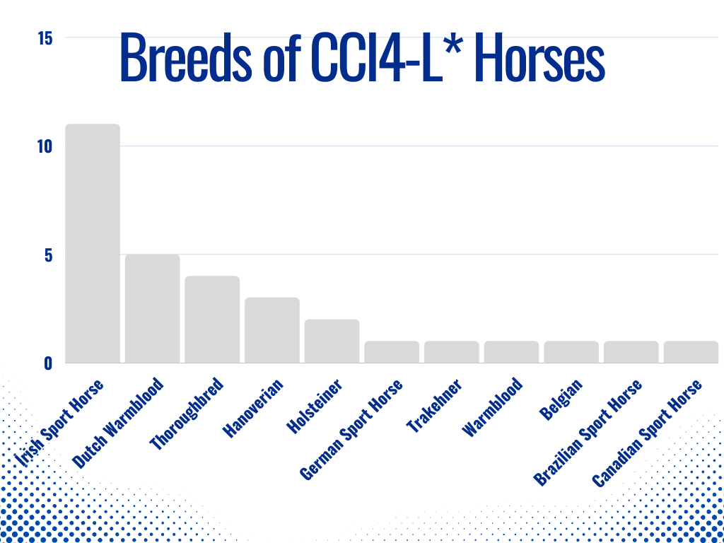 - Thoroughbred breeding runs strong in the four-star long lineup with five Thoroughbreds set to compete. The Holsteiner and Irish Sport Horse breeds run a close second each with four entries in the field.
