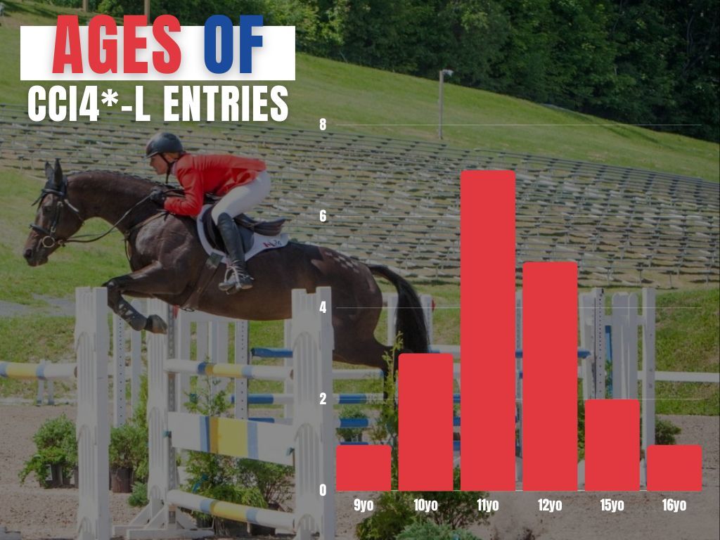 - The 94-horse field is made up of 19 entered in the CCI4*-L, 6 in the CCI4*-S, 32 in the CCI3*-L, 27 in the CCI2*-L, and 10 in the CCI2*-L U25. The 19 entries for the CCI4*-L are the same number that entered last year (of which 17 competed and 13 completed).