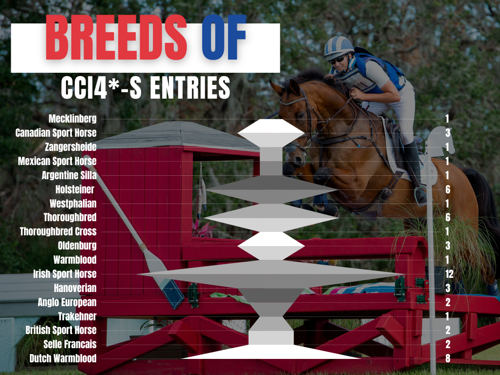- There are a whopping 56 entries in the CCI4*-S field representing five countries: the United States, Canada, Great Britain, Mexico, and Sweden. For comparison, the CCI4*-S division in their 2021 event featured 16 horse and rider pairs, and the 2022 October CCI4*-S saw 12 pairs compete.