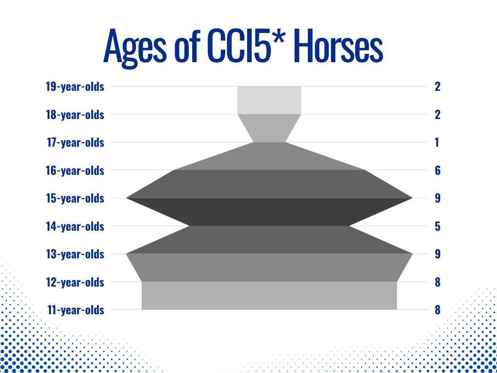 - Last year there were 63 starters in the CCI5*, but the field is larger than in 2019 (41 starters) and 2018 (47 starters). The largest start list in the last decade was in 2015 when Michael Jung and FischerRocana FST bested a group of 74 horses.