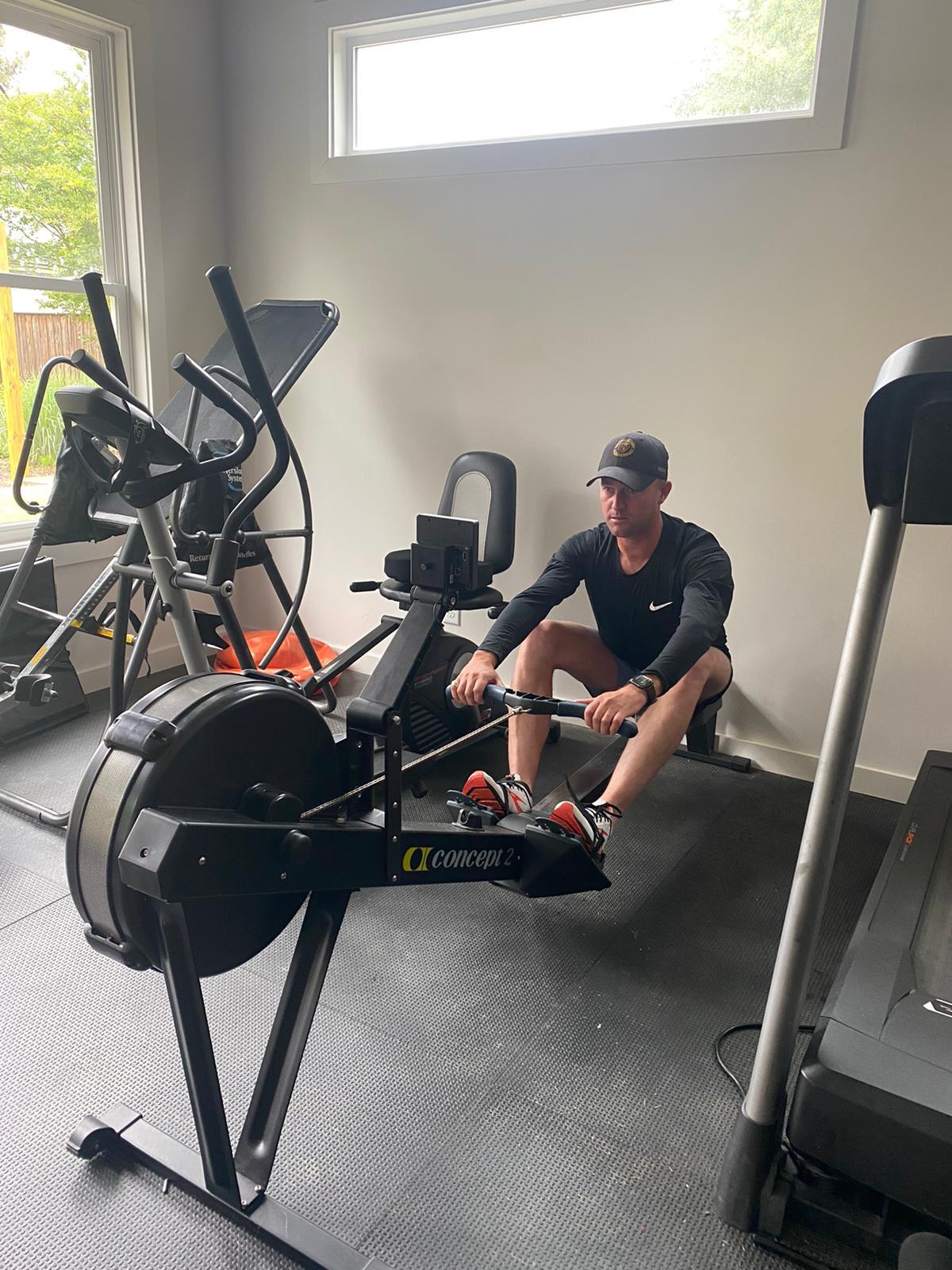 Will turned a little room in his house into a home gym, which now has free weights, a treadmill, a rowing machine, a pull-up bar, and so on.